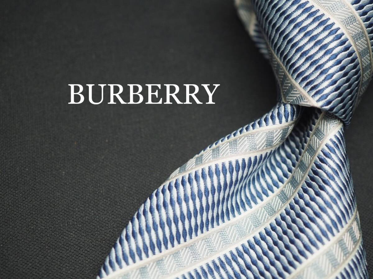 未使用品【BURBERRY バーバリー】 F2468 シルバーネイビー系 SILK ブランド ネクタイ 古着 良品 転売 仕入