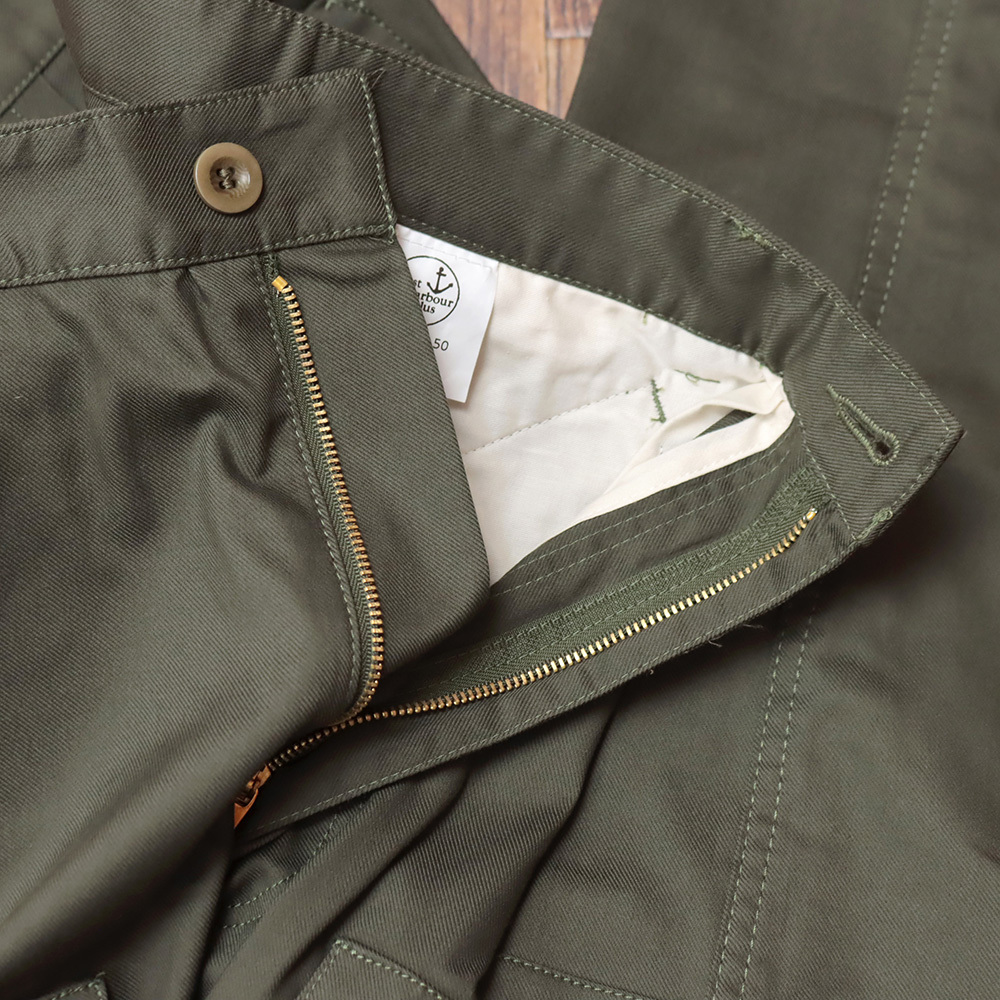 ヴィンテージのミリタリーウェアをモダンに昇華させたパンツ。耐久性の高いコットン生地を使用し、武骨でありながら洗練された表情を持つ仕上がりとなっています。