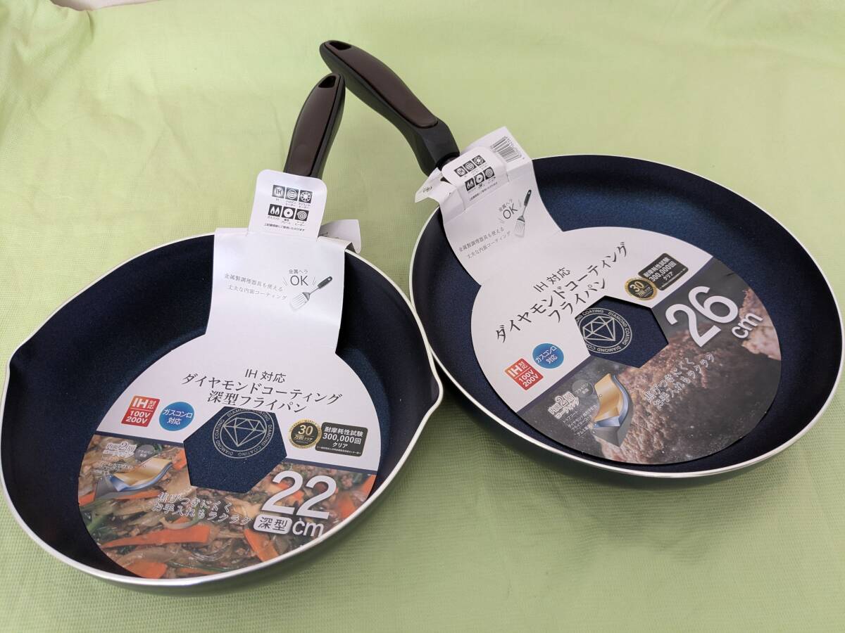 【送料無料】【2点セット】【訳あり(難あり)】【未使用品】カクセー ダイヤモンドコーティング フライパン (26cm・両口深型22cm)