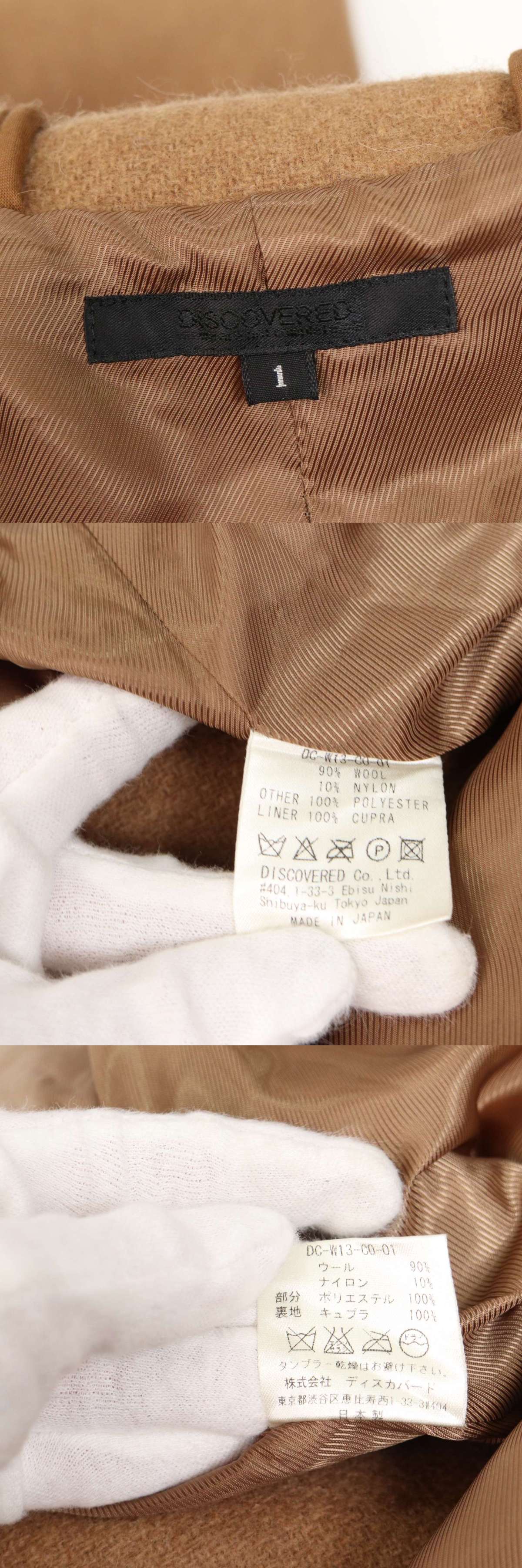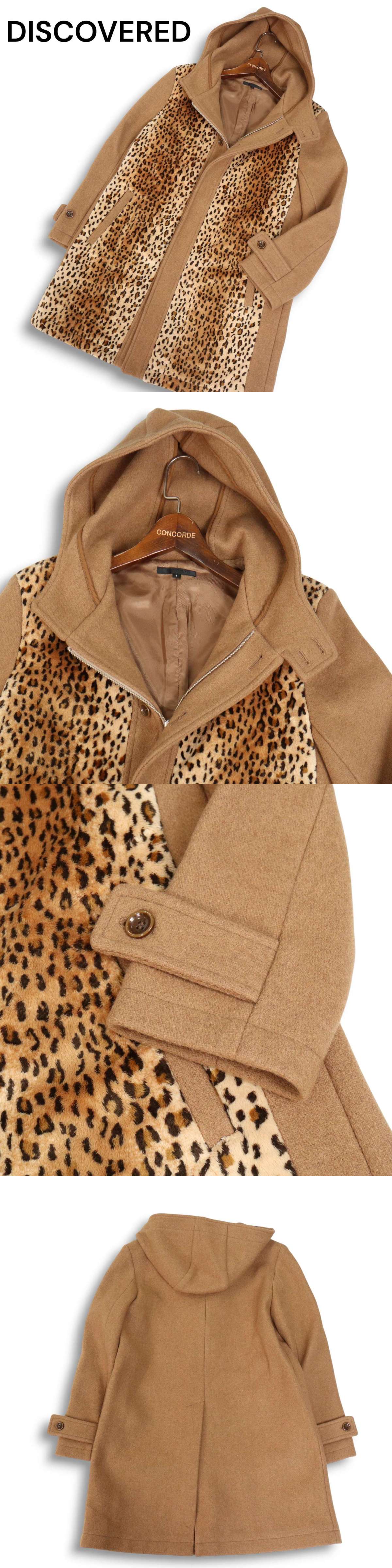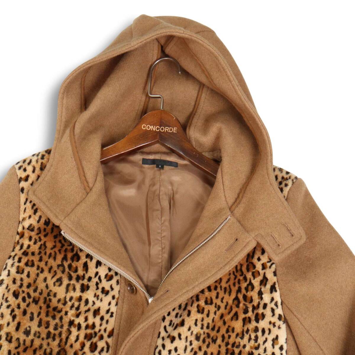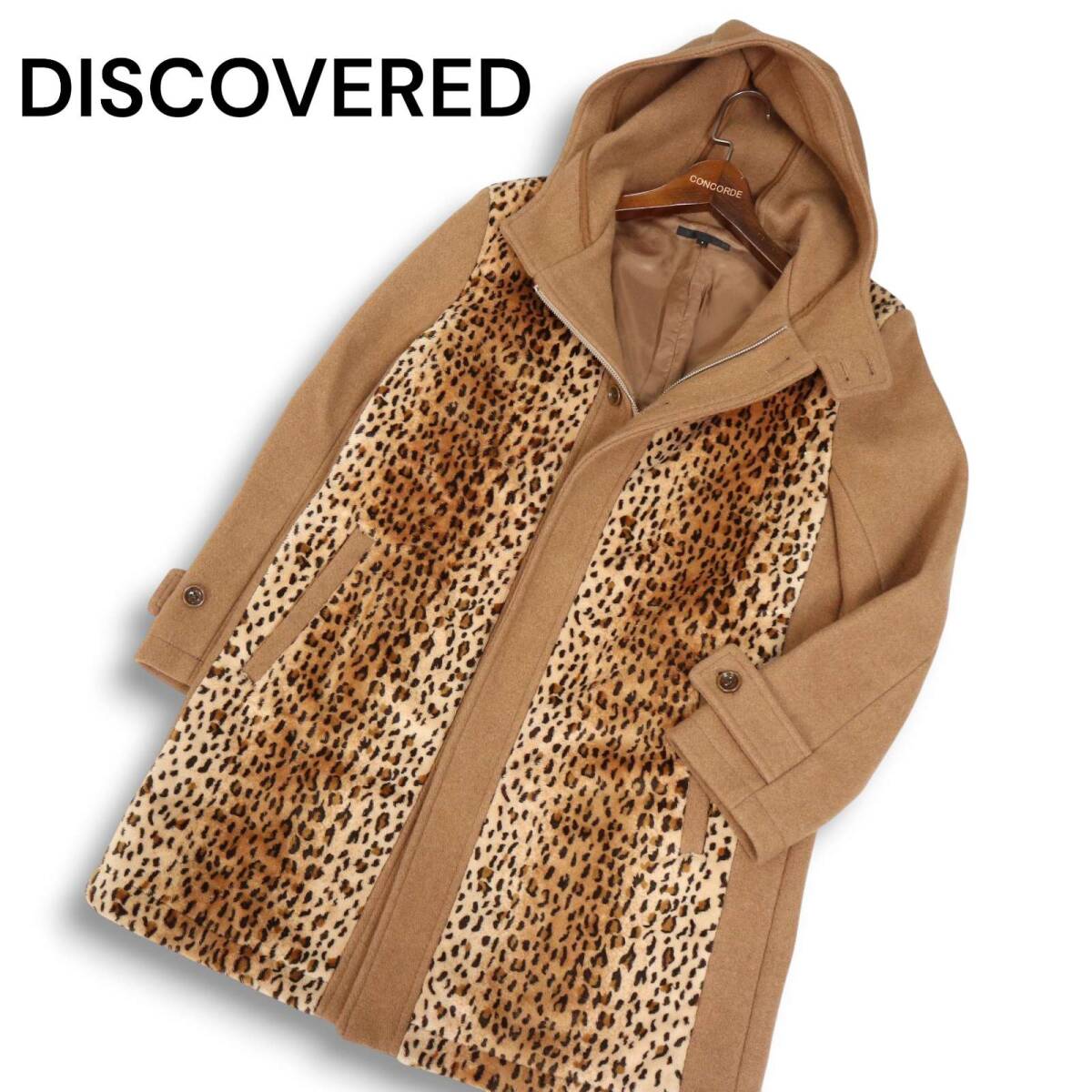 美品★ DISCOVERED ディスカバード 秋冬 レオパード柄 切替★ メルトン ウール フーディー コート Sz.1 メンズ 日本製