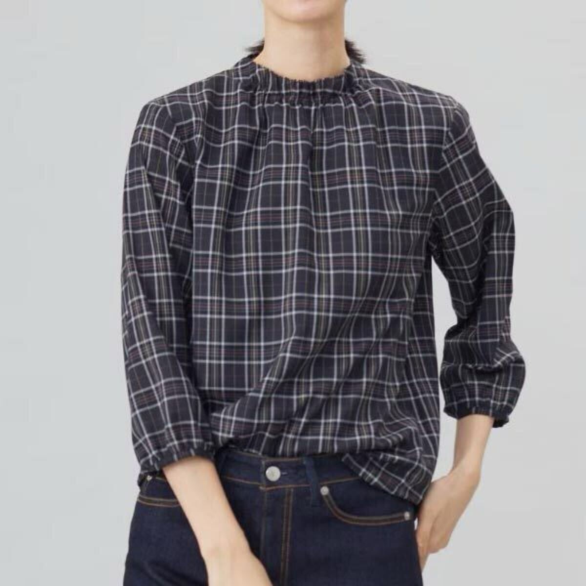 チェック柄がコーディネートのアクセントになり、晩夏から秋まで長くお使いいただけます。