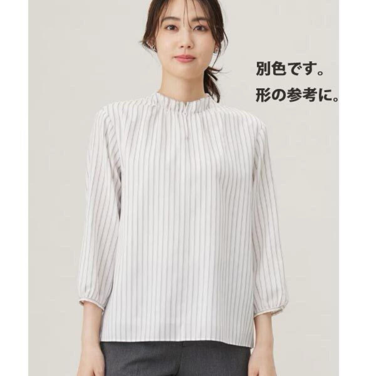 【J.PRESS LADIES】プロビスストライプチェック フリルネック カットソー 9号(Mサイズ)ブラウス シャツ ジェイプレス レディス 新品