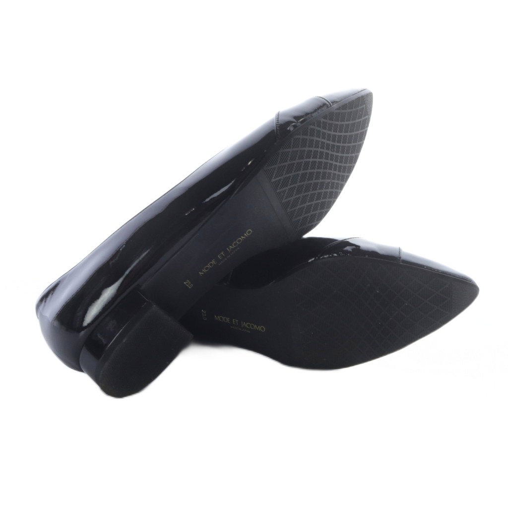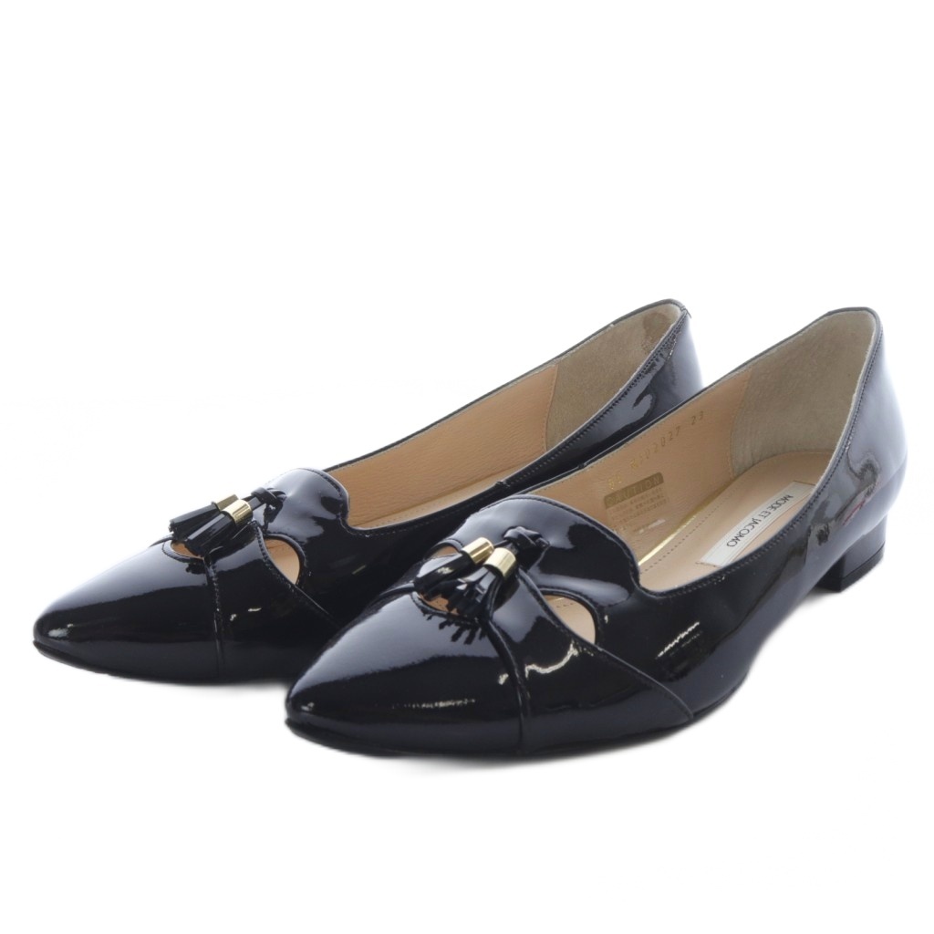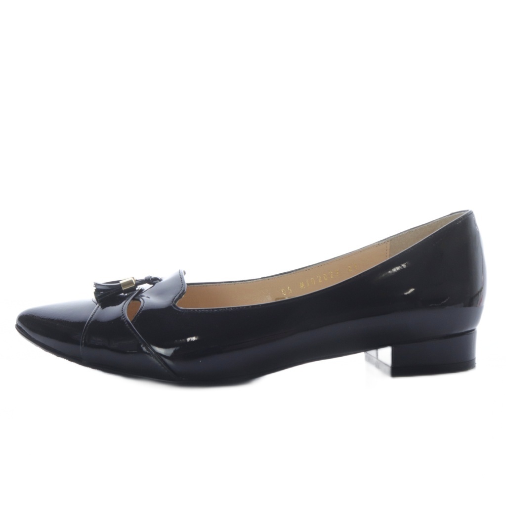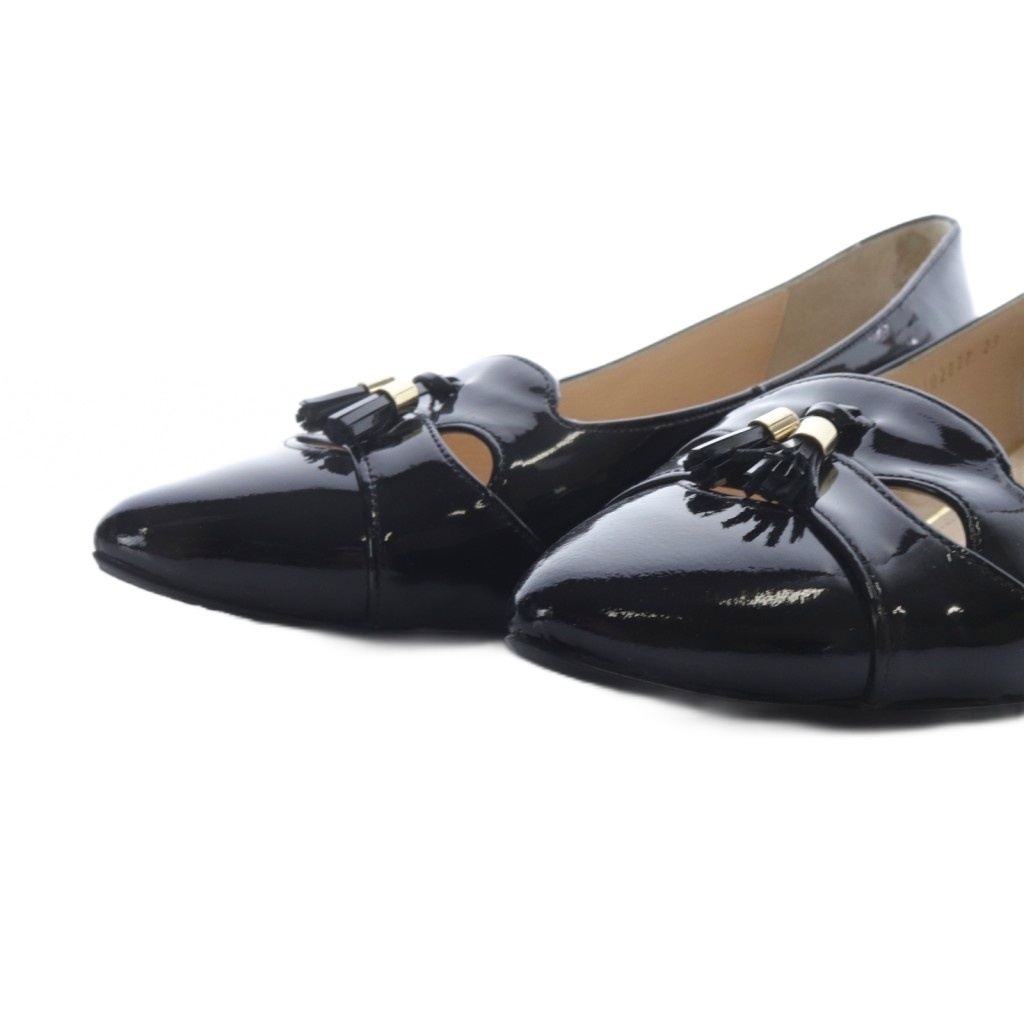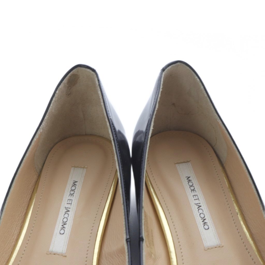 モードエジャコモ Mode et Jacomo パンプス ローヒール ポインテッドトゥ タッセル エナメルレザー 23cm ブラック /YO21 レディース