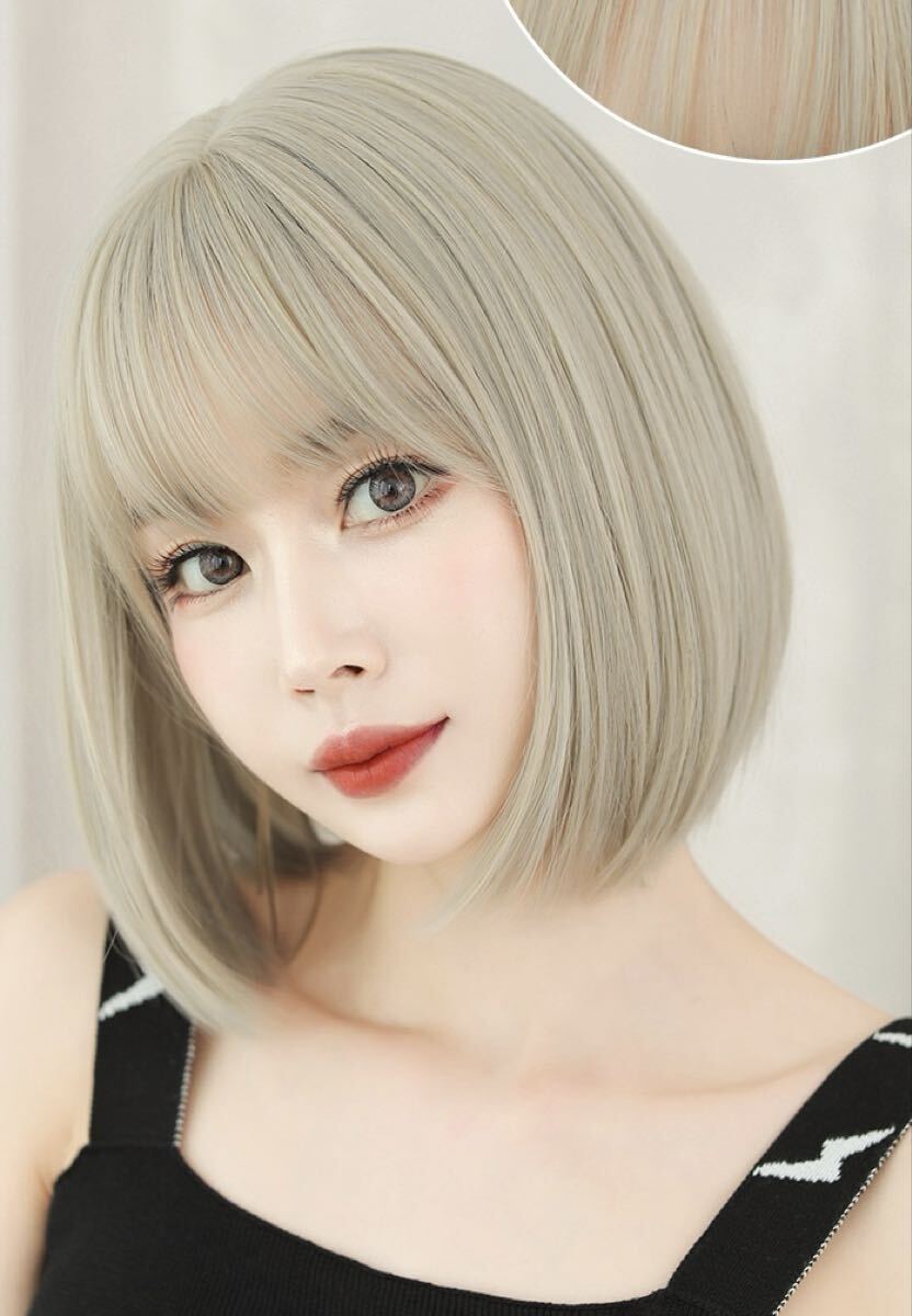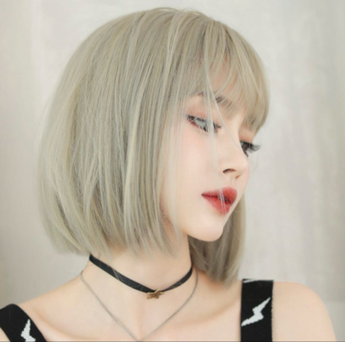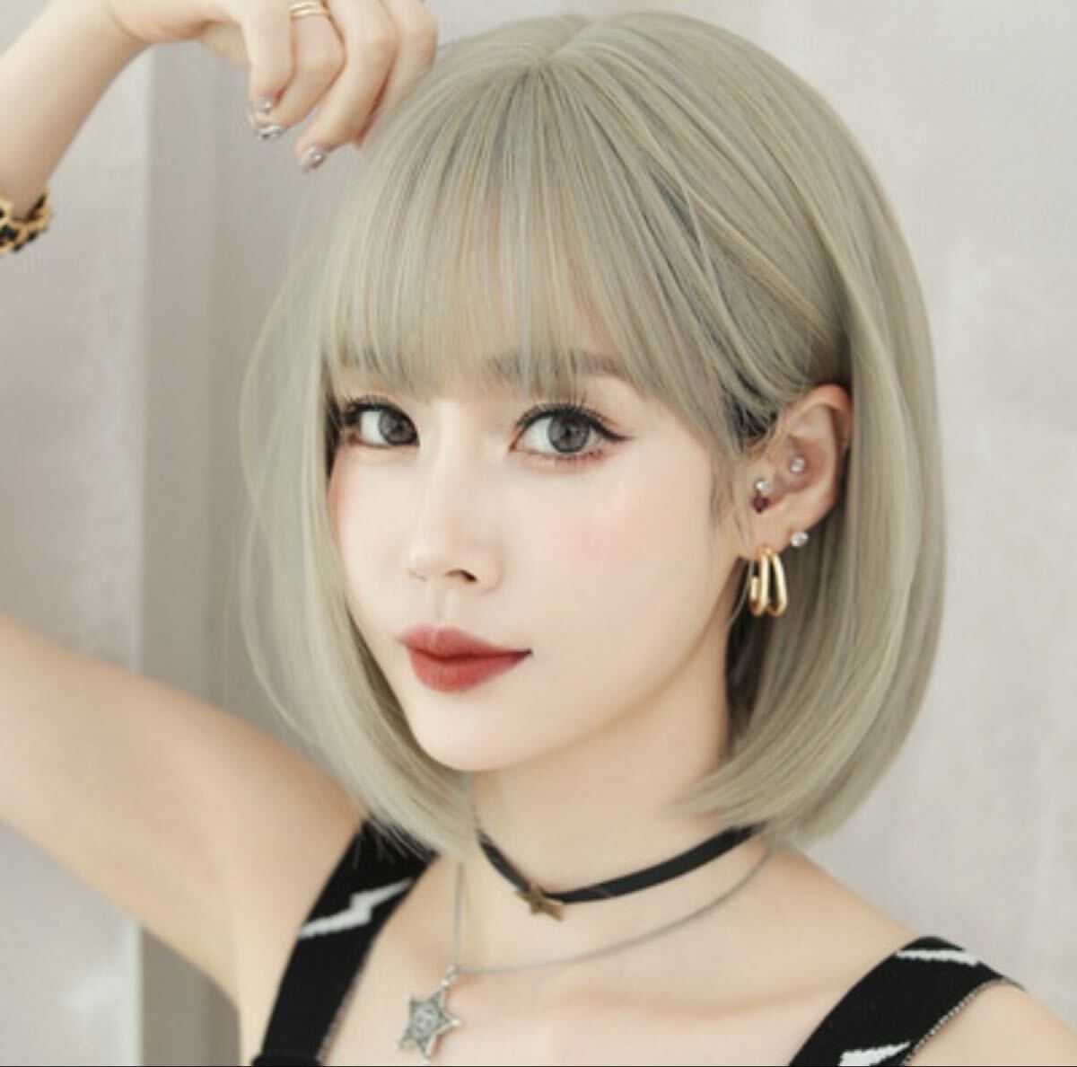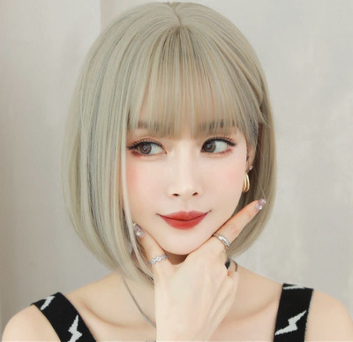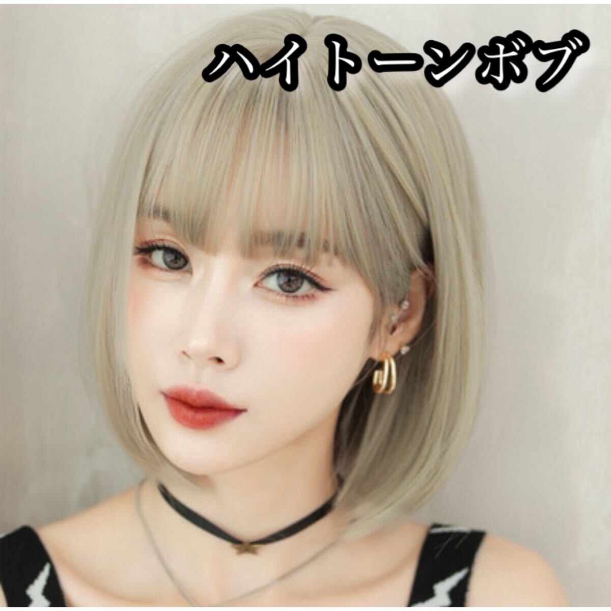 ウィッグ ボブ かわいい ストレート フルウィッグ 自然 ショート かつら 耐熱 明るい髪 金髪 シルバー