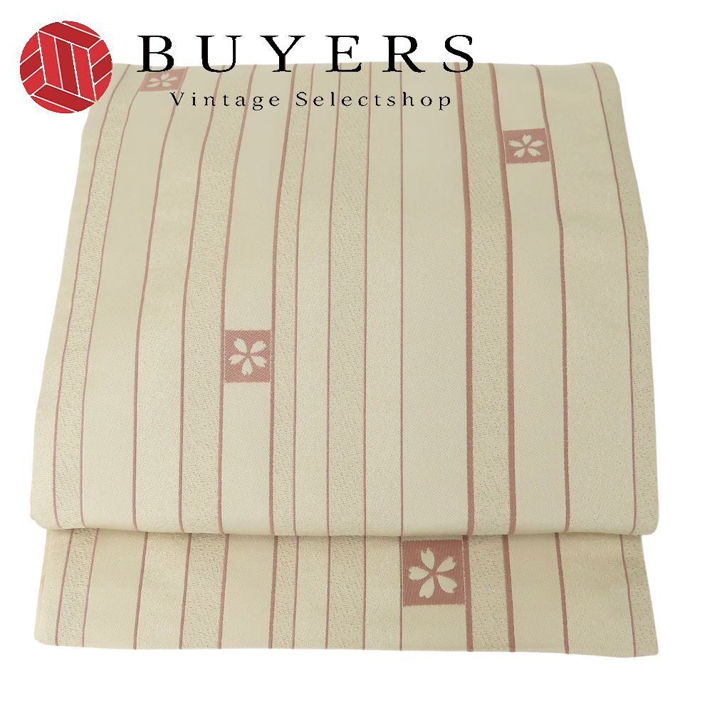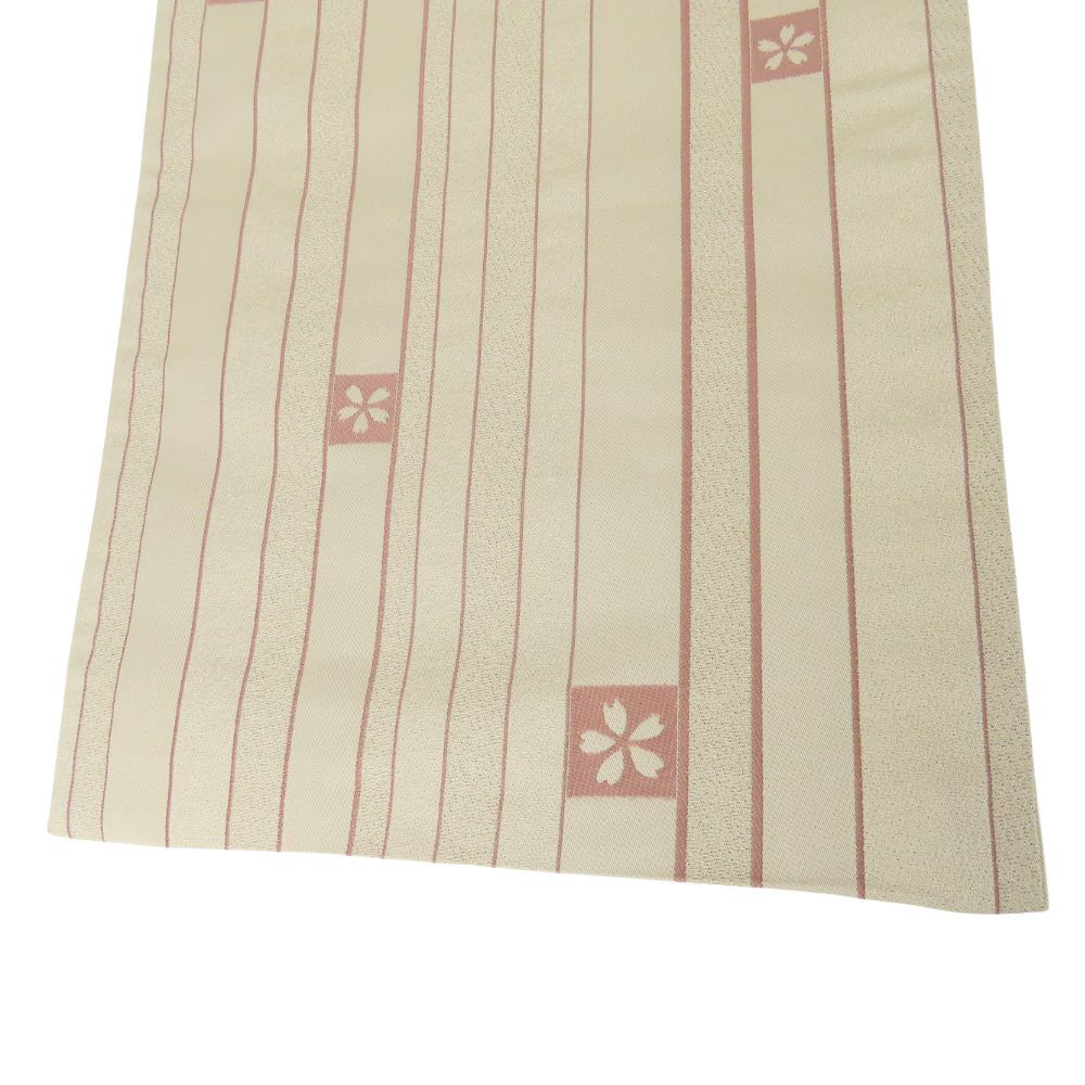 中古 袋帯 京袋帯 化学繊維 ベージュ 縦縞柄 桜文 フォーマル 和装 呉服 和服 きもの レディース 女性