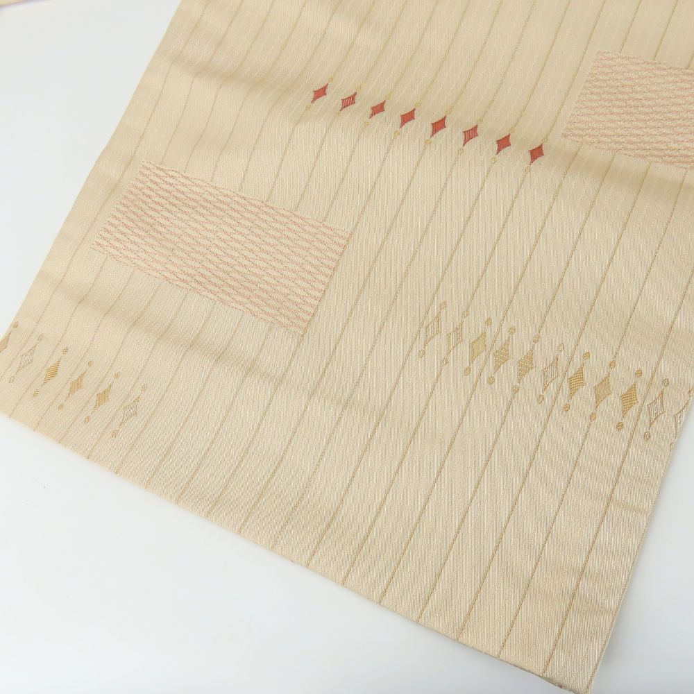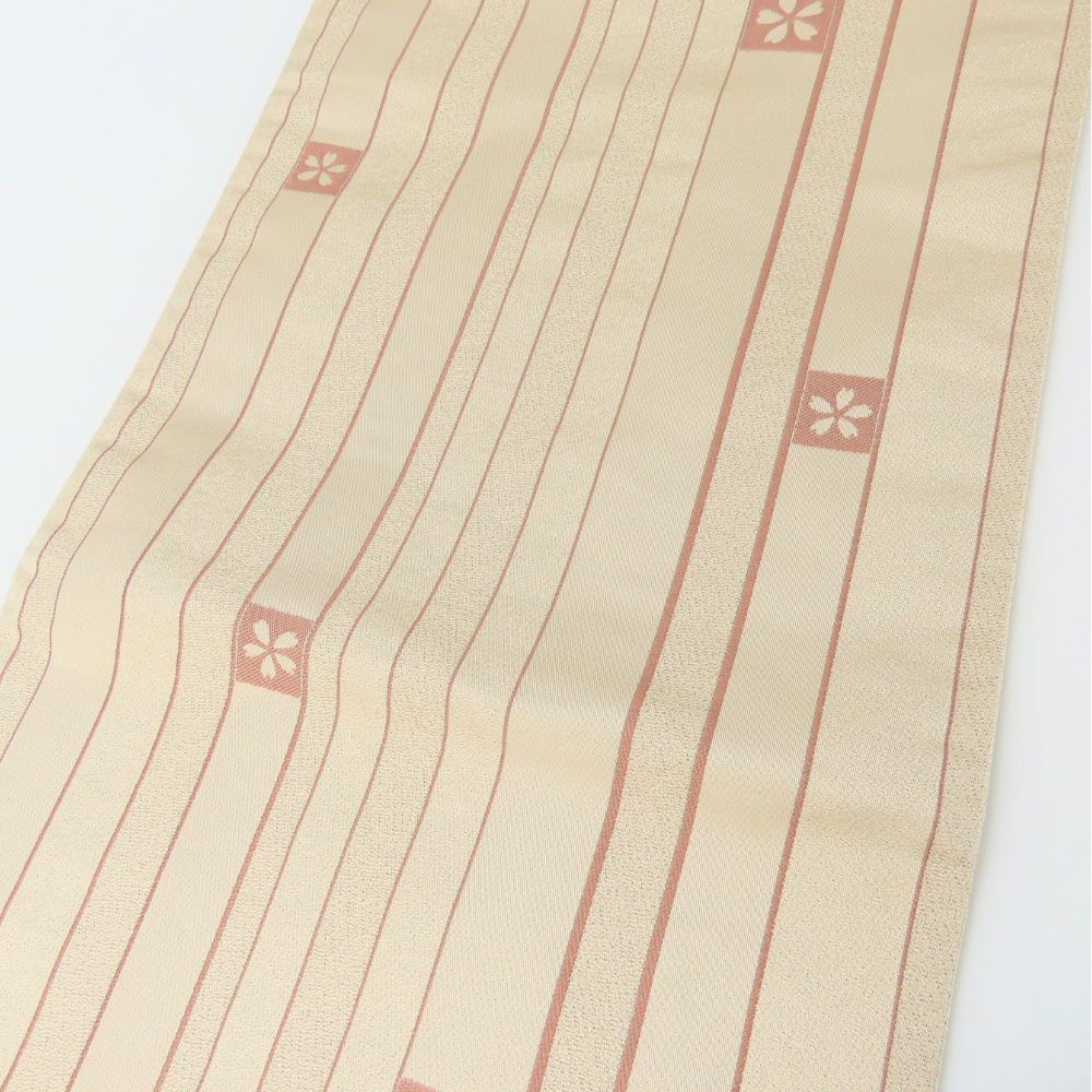 品名 【中古】 袋帯 京袋帯 化学繊維 ベージュ 縦縞柄 桜文 フォーマル レディース 女性
