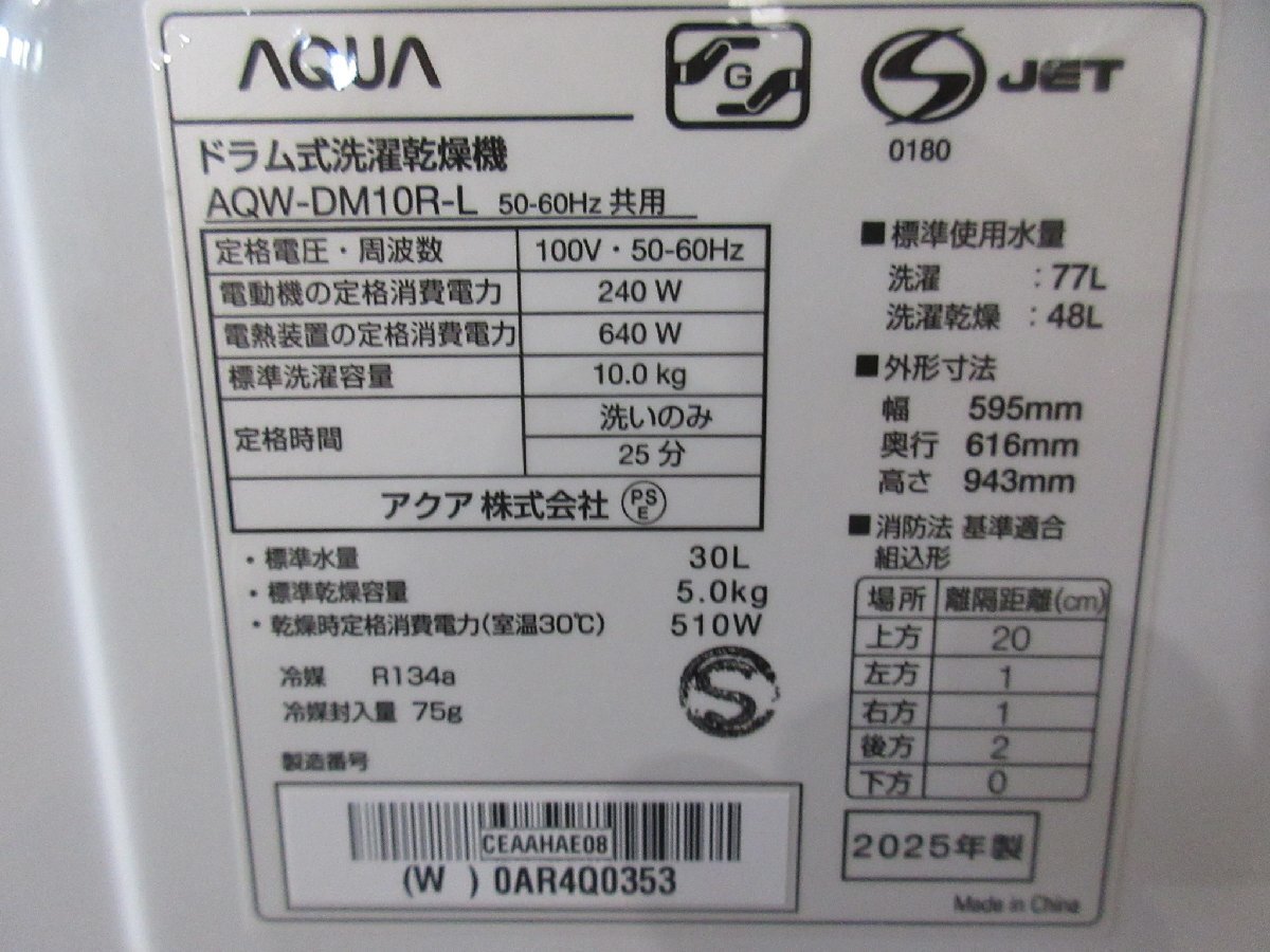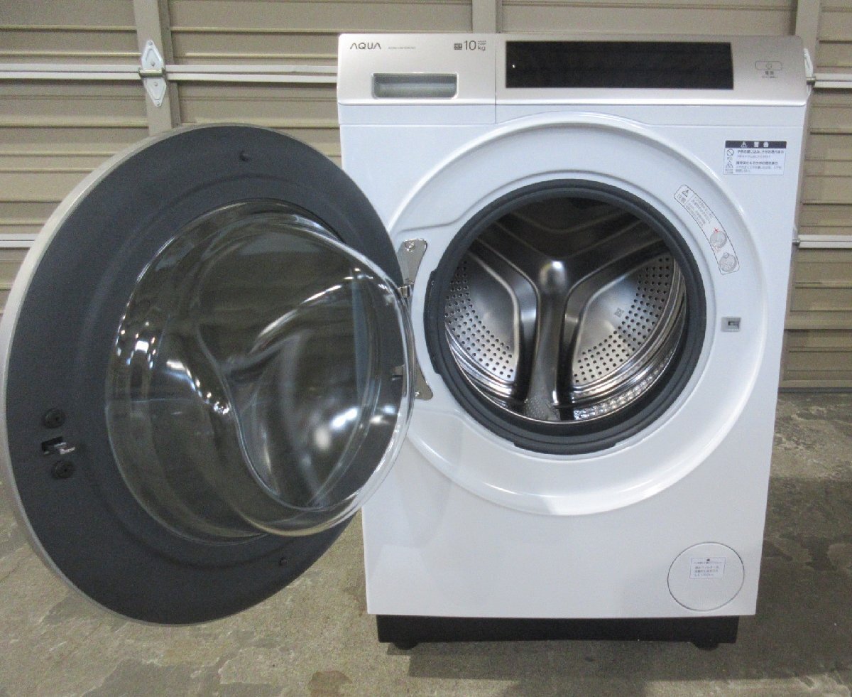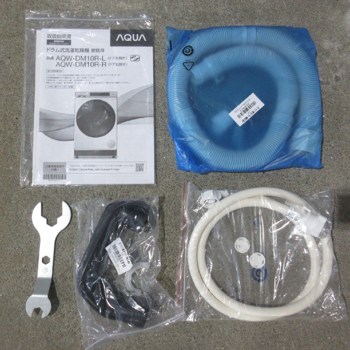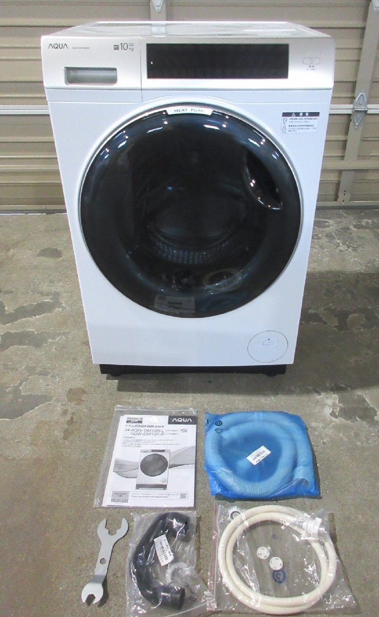 中古美品 24年製 AQUA ドラム式洗濯乾燥機 まっ直ぐドラマ2.0 洗濯10㎏ 乾燥5㎏ 左開き ホワイト ドラム式洗濯機 AQW-DM10R-L(W) [9361]
