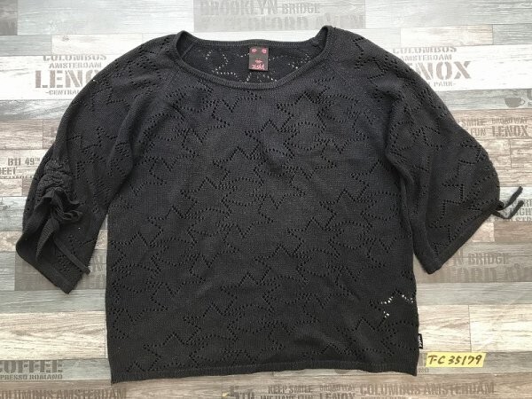 X-girl エックスガール レディース 星柄編み ニット 七分袖シャーリング カットソー 2 紺 です。