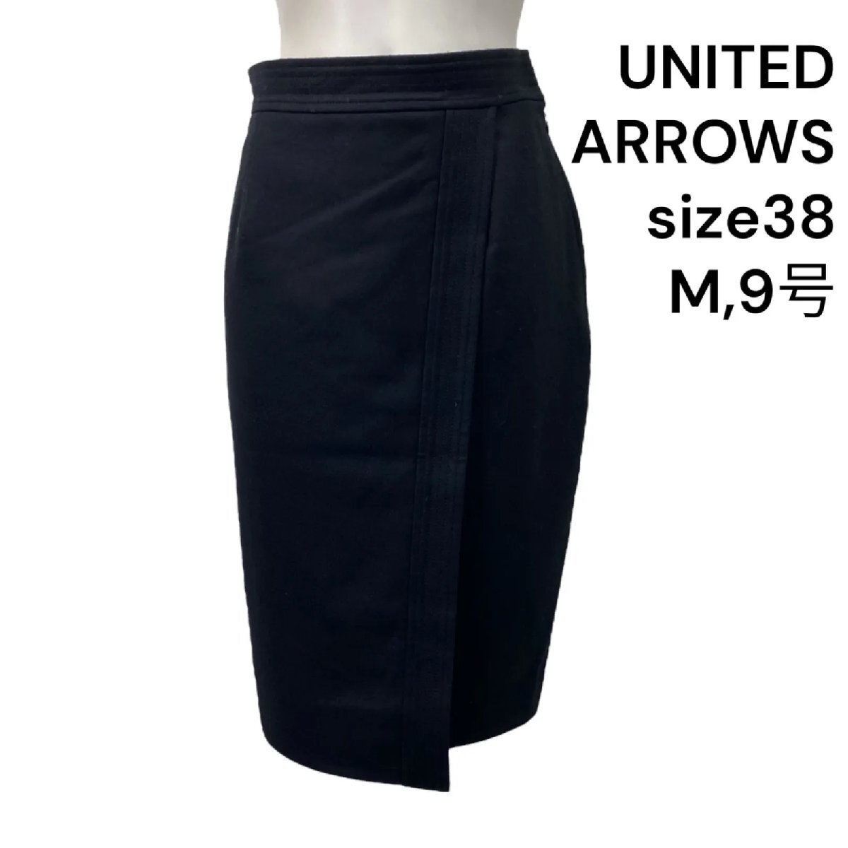 ユナイテッドアローズ UNITED ARROWS 膝丈スカート ブラック 毛100% 38、M、9号 レディース S5U298