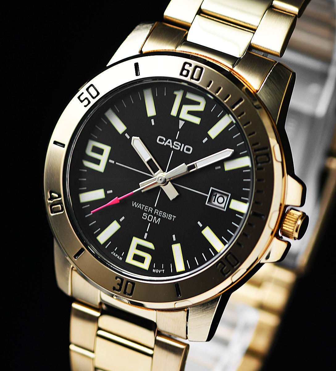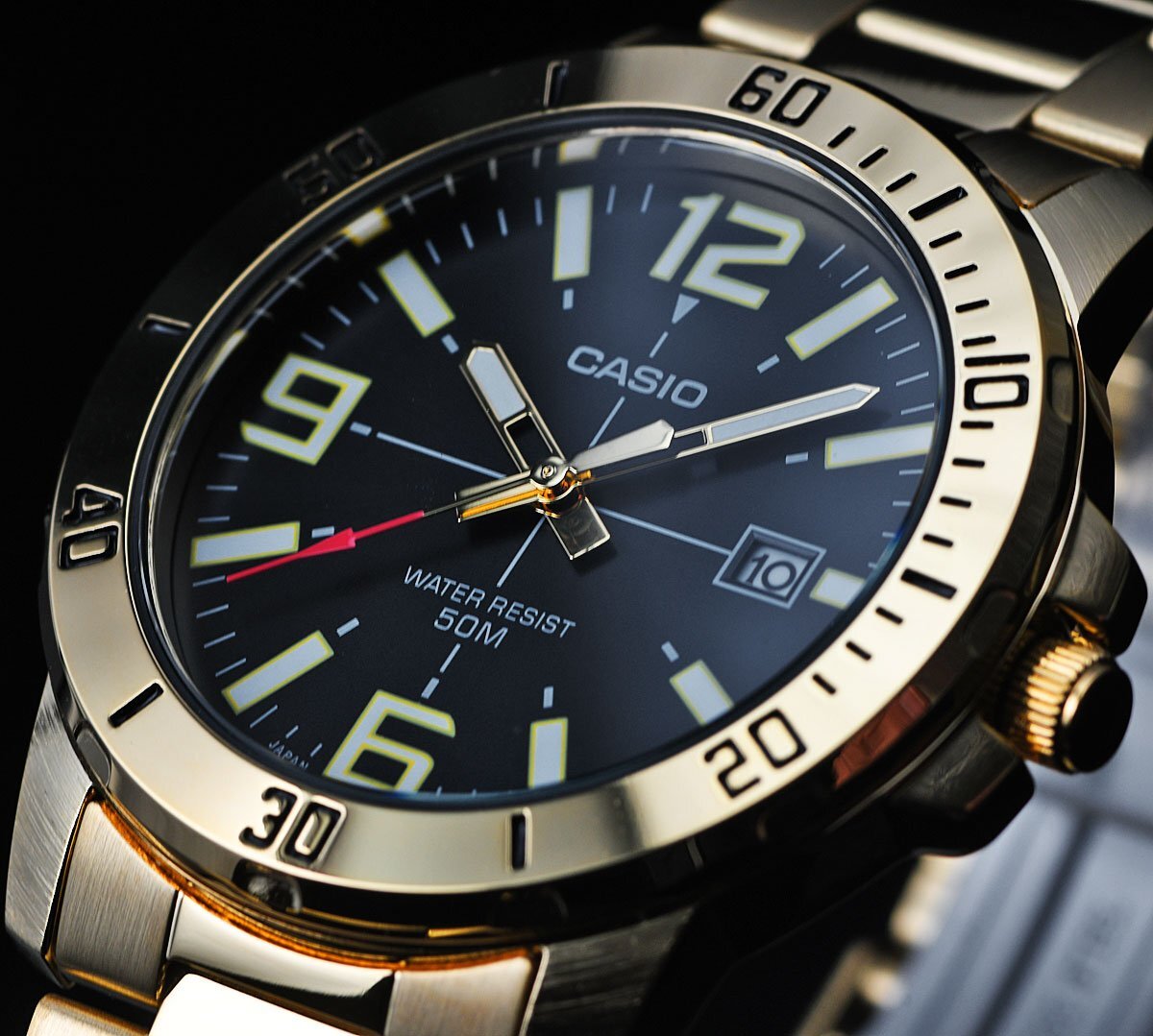 新品 逆輸入カシオ最新作 豪華ゴールド&ブラック 50m防水 腕時計 新品 CASIO メンズ 激レア日本未発売