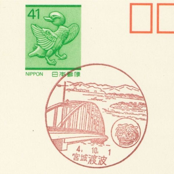風景印☆初日☆宮城・渡波・H4.10.1・旧印