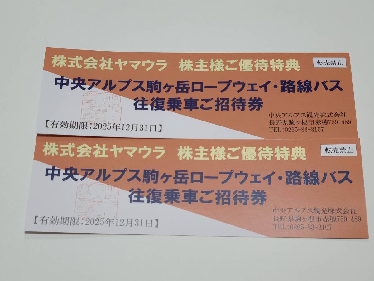 【ゆうパケットポストmini 送料無料】中央アルプス駒ヶ岳ロープウェイ・路線バス 往復乗車ご招待券 2枚セット  ヤマウラ 株主優待券