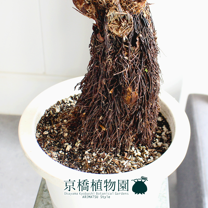 茎の表面を「気根」と呼ばれる細かい根が密にからみ合って覆い、木の幹のようになります。
