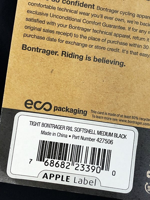 ボントレガー BONTRAGER RXLソフトシェルタイツ RXL Softshell Tight Mサイズ ブラックです。