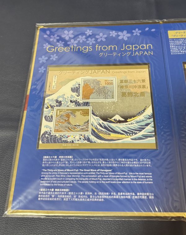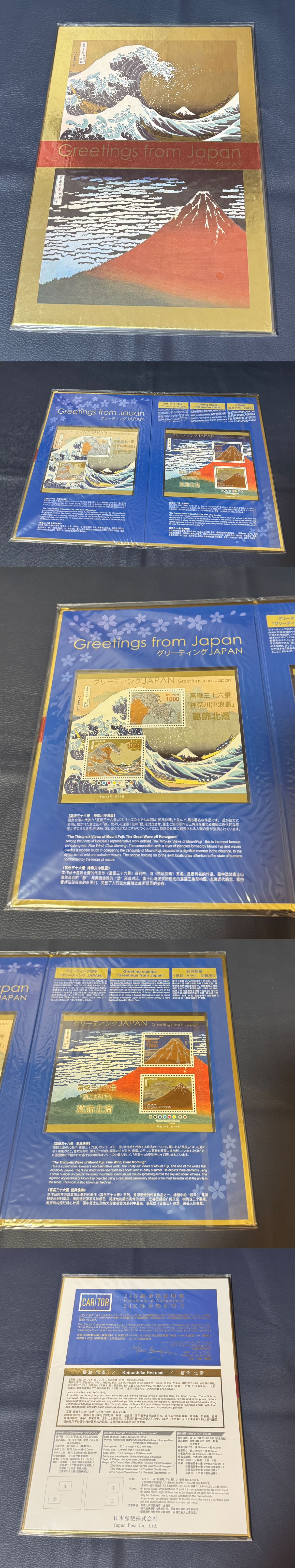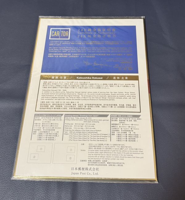 ♪グリーティングjapan/富嶽三十六景「神奈川沖浪裏」葛飾北斎/「凱風快晴」/24K純金箔証明書/シート♪rk130