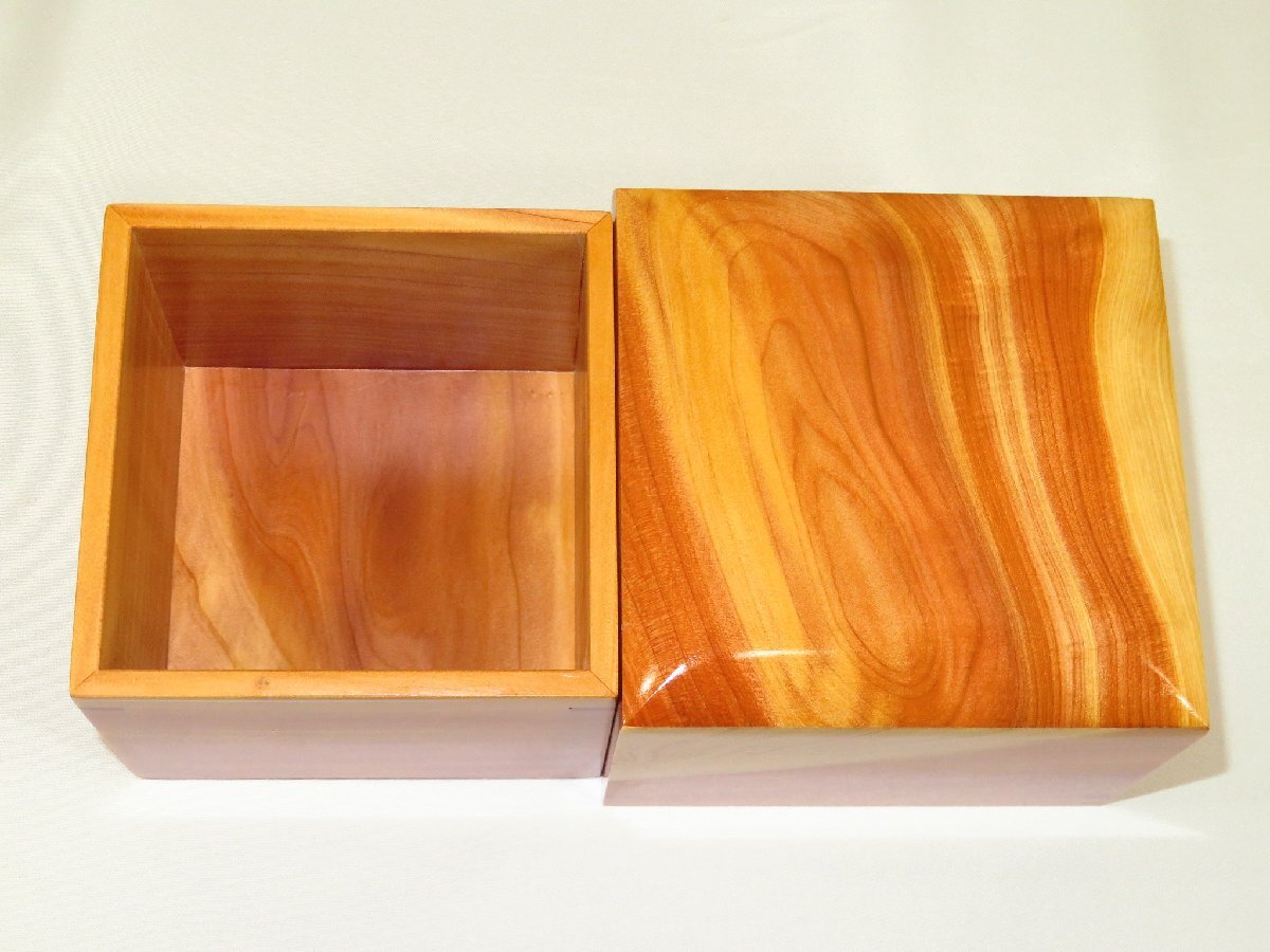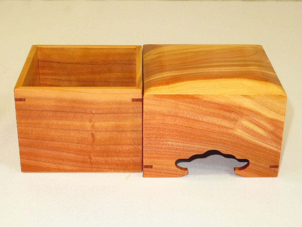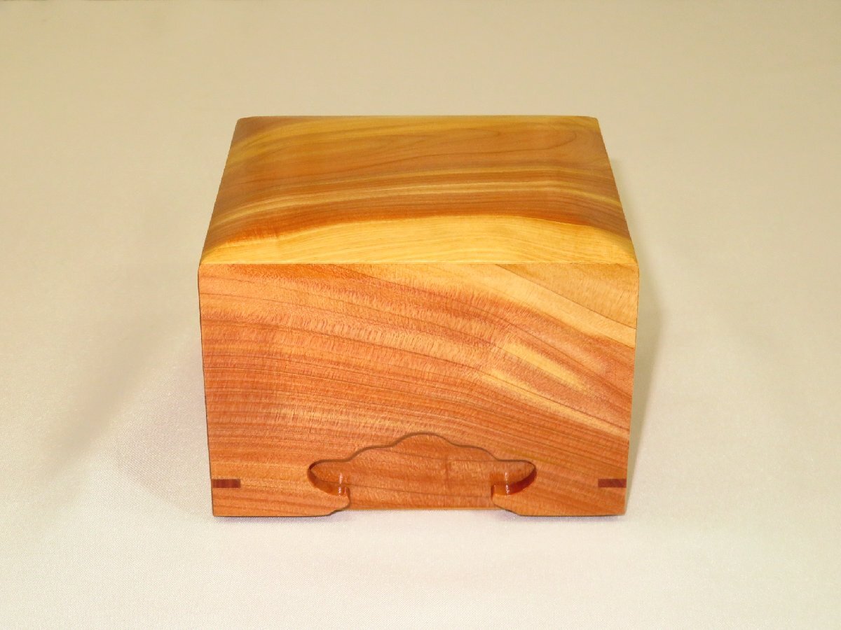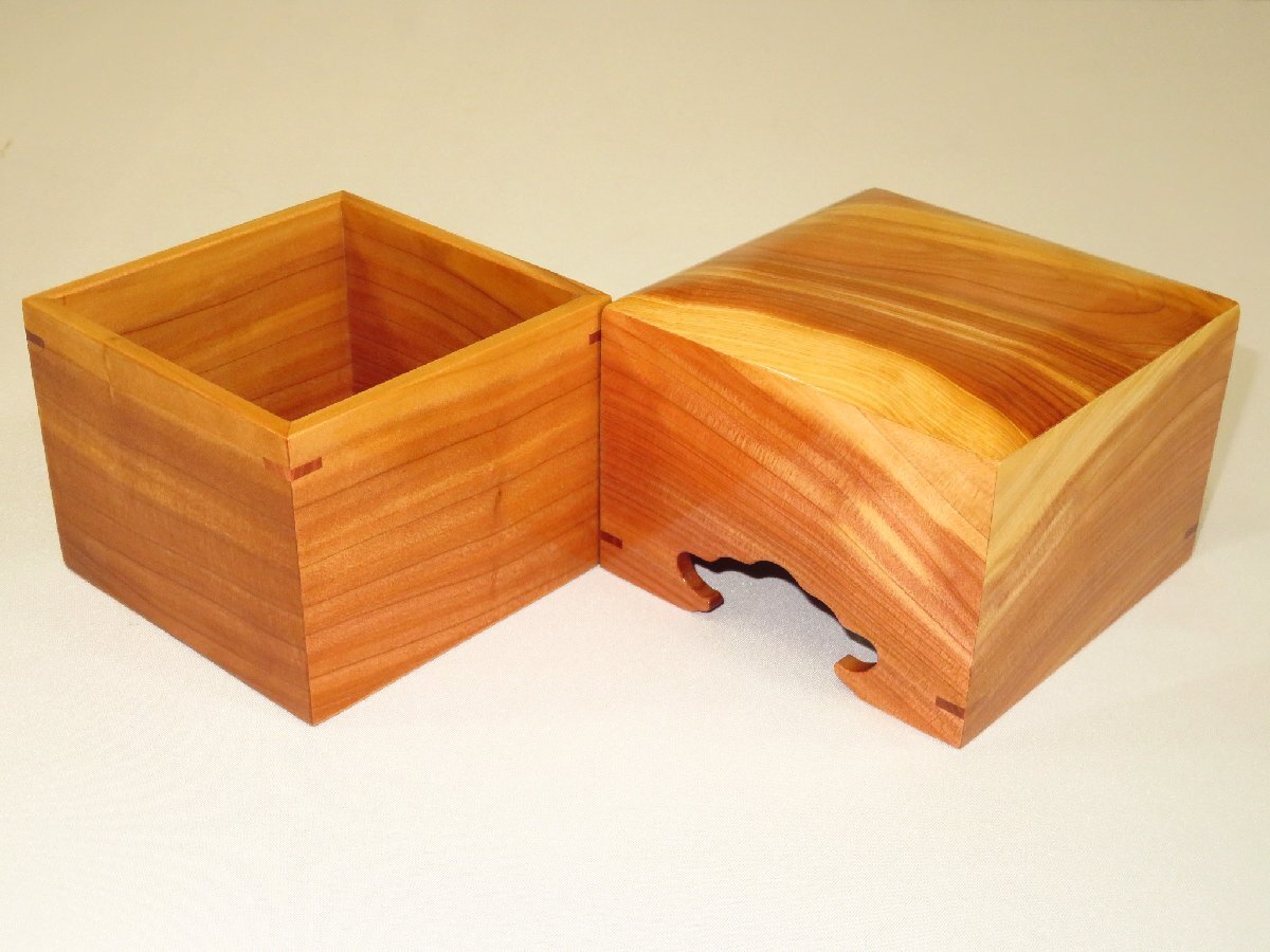 蓋の天板・身底板ははめ込み式(駒箱にありがちな側板とのズレが生じにくい作りです)、蓋の下部・身の上部にそれぞれチギリが埋めてあります。今回はウレタン全艶仕上(非常に光沢のある仕上です)。