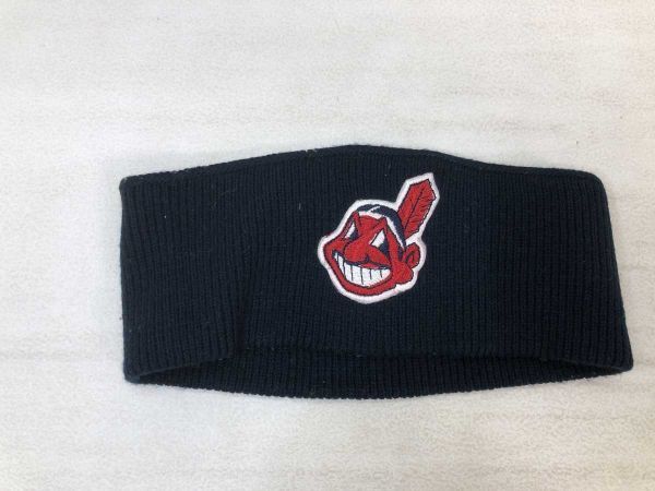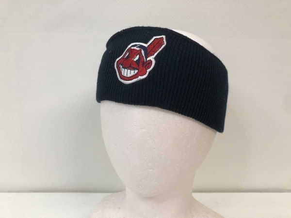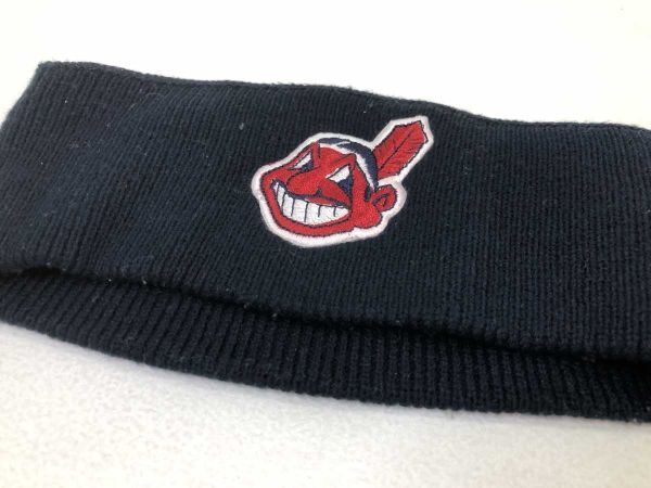MLB メジャーリーグ 野球チーム インディアンス Cleveland Indians 現クリーブランド・ガーディアンズ ワフー酋長 ニットヘアバンド 紺です。