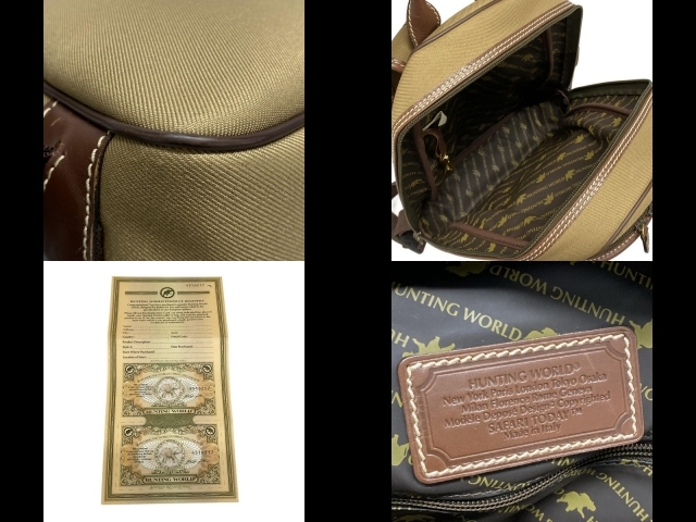 ハンティングワールド HUNTING WORLD リュックサック/バックパック レザー カーキ×ブラウン バッグ
