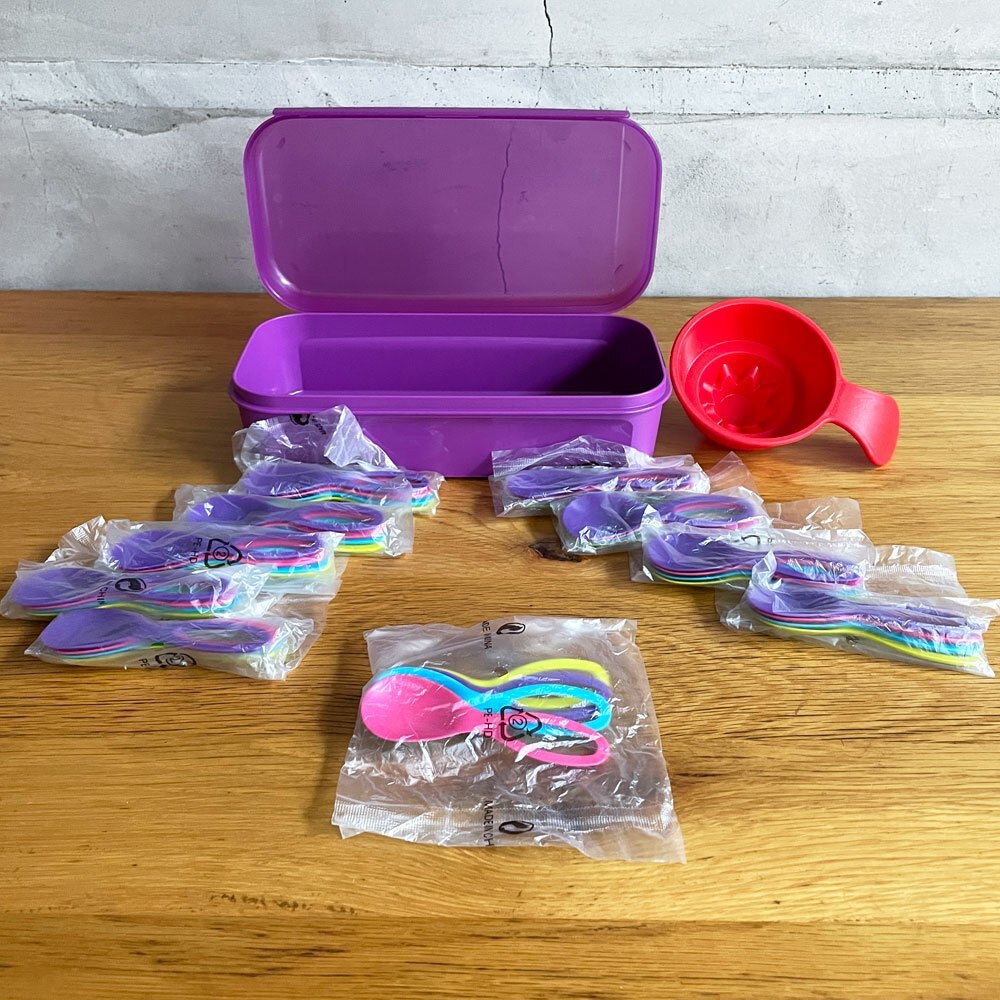 | コメント | 耐久性と機能美を兼ね備えた" タッパーウエア / Tupperware "の保存容器や食器等をまとめての出品です。 様々な保存容器を始め、プチパーティセットやベビースプーンなどお子さまがいらっしゃる方にも便利なアイテムが揃っております。 タッパーウェアならではのポップなデザインと高い品質、キッチン周りやお出掛けに役立つアイテムをまとめたお得なセットです。 【セット内容】 プレート 700ml×4 スナックカップ×4 型抜き×1 エコボトル 500ml×1 エコボトル スクエア 500ml×1 シェーカー×1 スレンダー タンブラー 330ml×2 リヒータブルプチスクエア 80ml×4 ベビースプーン 1袋10本入り(未使用)×4 ベルビュー 980ml×1 ベースラインキャニスター 1.5L×1 プチパーティーセット(未使用)×1 ※当ショップは、主にリサイクル品を取り扱っております。基本的にUSED品である事をご理解頂き、ご入札をご検討下さいませ。 | (設置場所や床材、搬入経路の動線等、よくご確認頂いた上、ご検討下さい。)