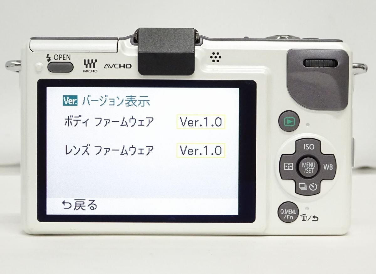商品説明 Panasonic LUMIX DMC-GF2 デジタルミラーレス一眼カメラ ダブルレンズキット の出品です。 カラーはシェルホワイトです。 H-H014 パンケーキレンズとH-FS014042 標準ズームレンズの2つがセットです。 バッテリー、チャージャー、AVケーブル、USBケーブル、取扱説明書類 が付属します。 ☆動作確認につきまして 動作正常品です。 中古品という事で小チリ程度の混入はありますが、カビや曇りはありません。 ☆注意事項につきまして 液晶画面の内部に空気のような物が混入しているように見えます。(写真10枚目) 色が付いている状態だと分かりません。 真っ黒な状態か、未通電状態なら光の加減で見える事があります。 特に使用に影響は御座いません。 中古/動作品として出品させて頂きます。 商品詳細
