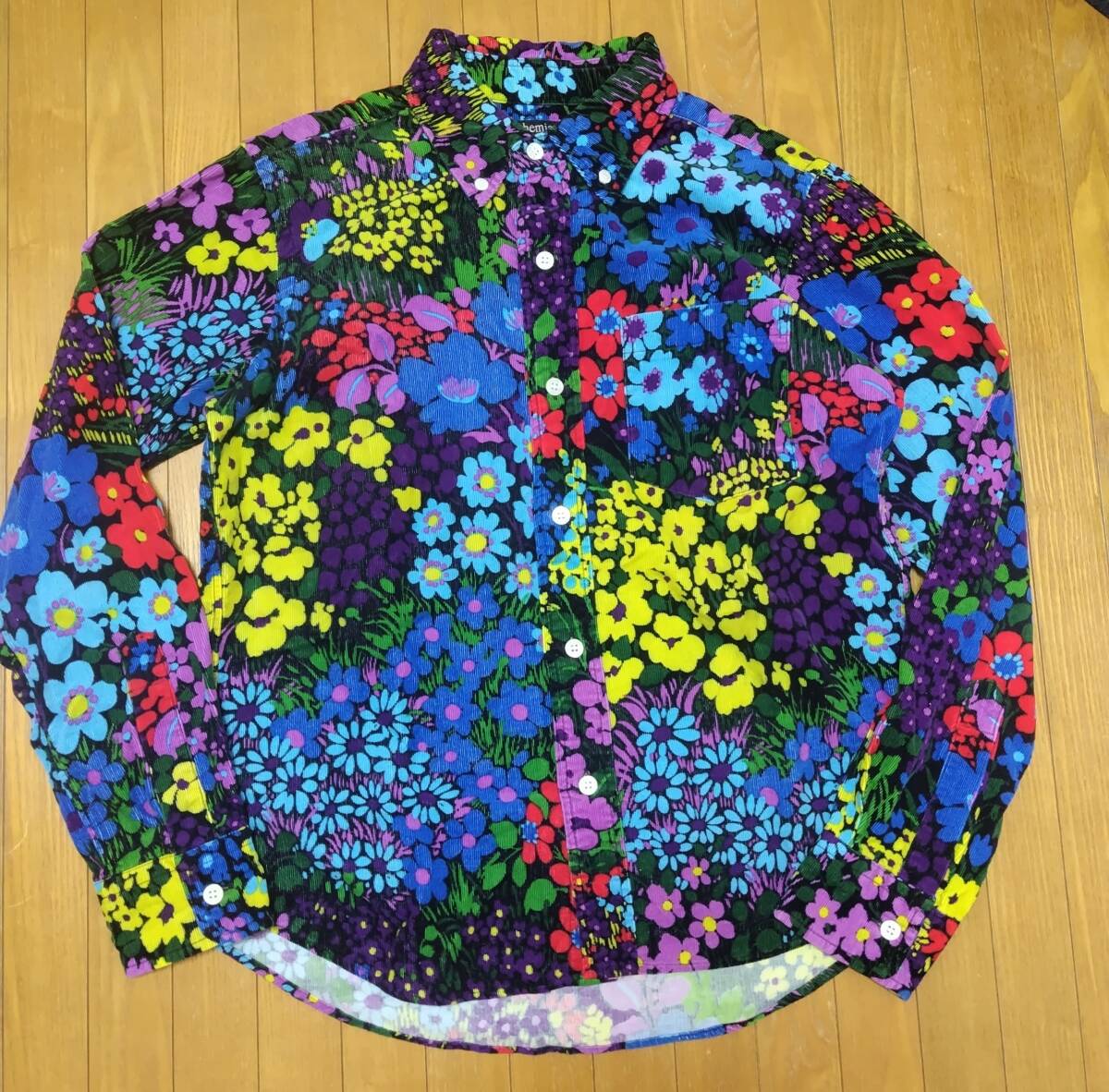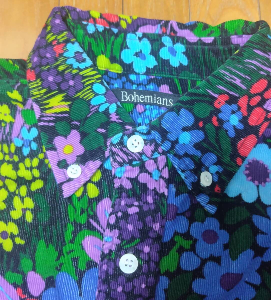 未使用 BOHEMIANS ボヘミアンズ 長袖シャツ コーデュロイシャツ ボタンダウン フラワープリント ボタニカル 花柄 0 メンズ 日本製