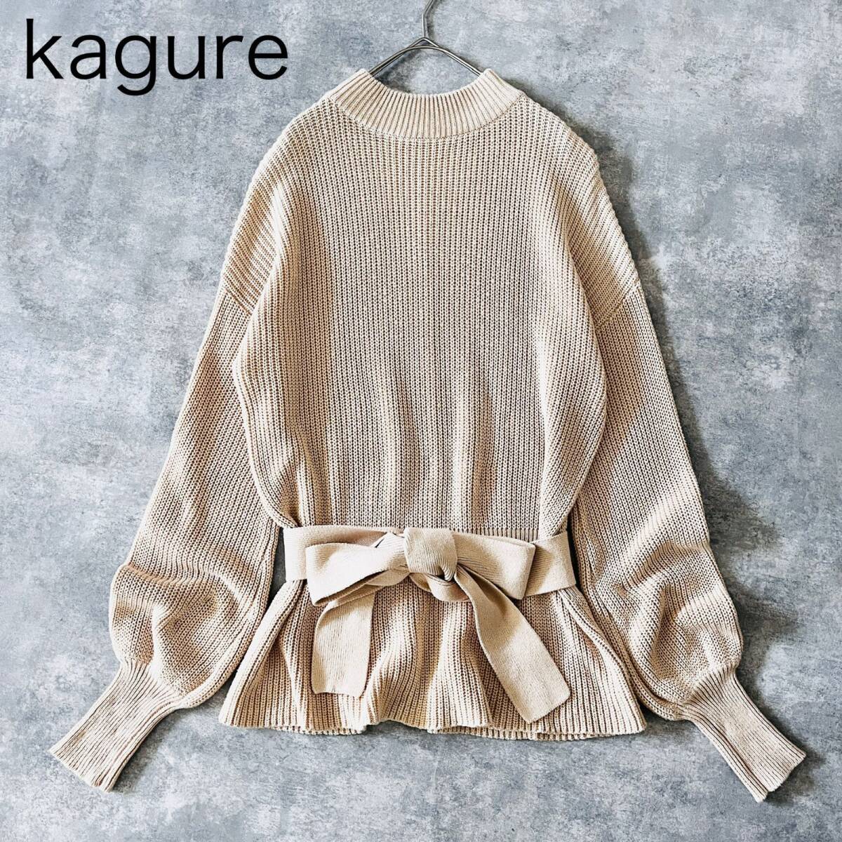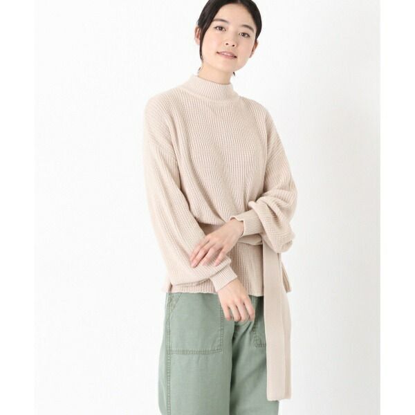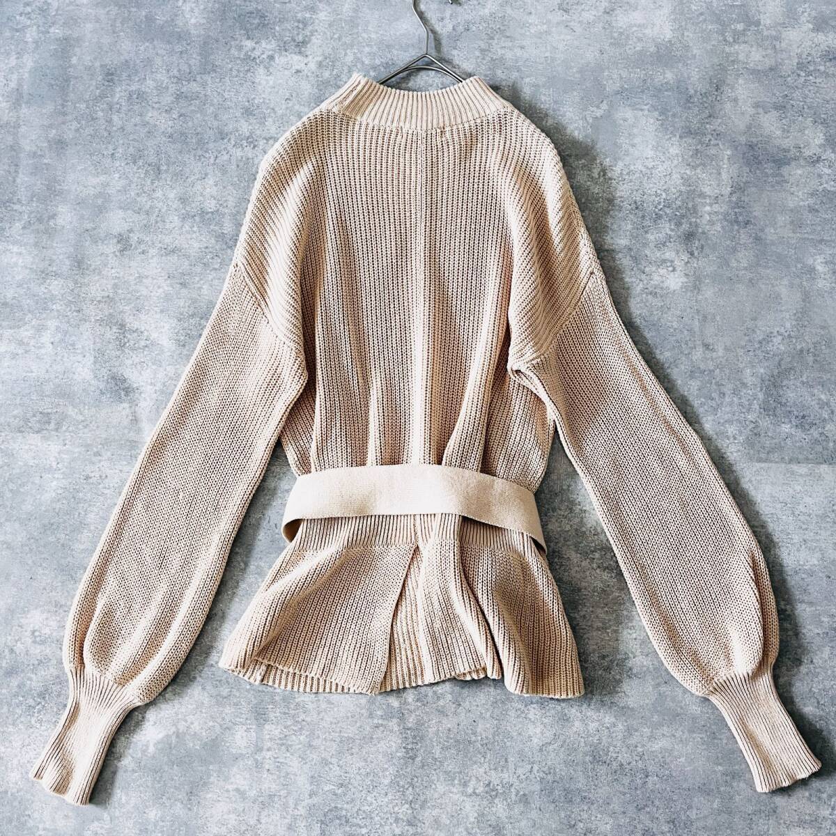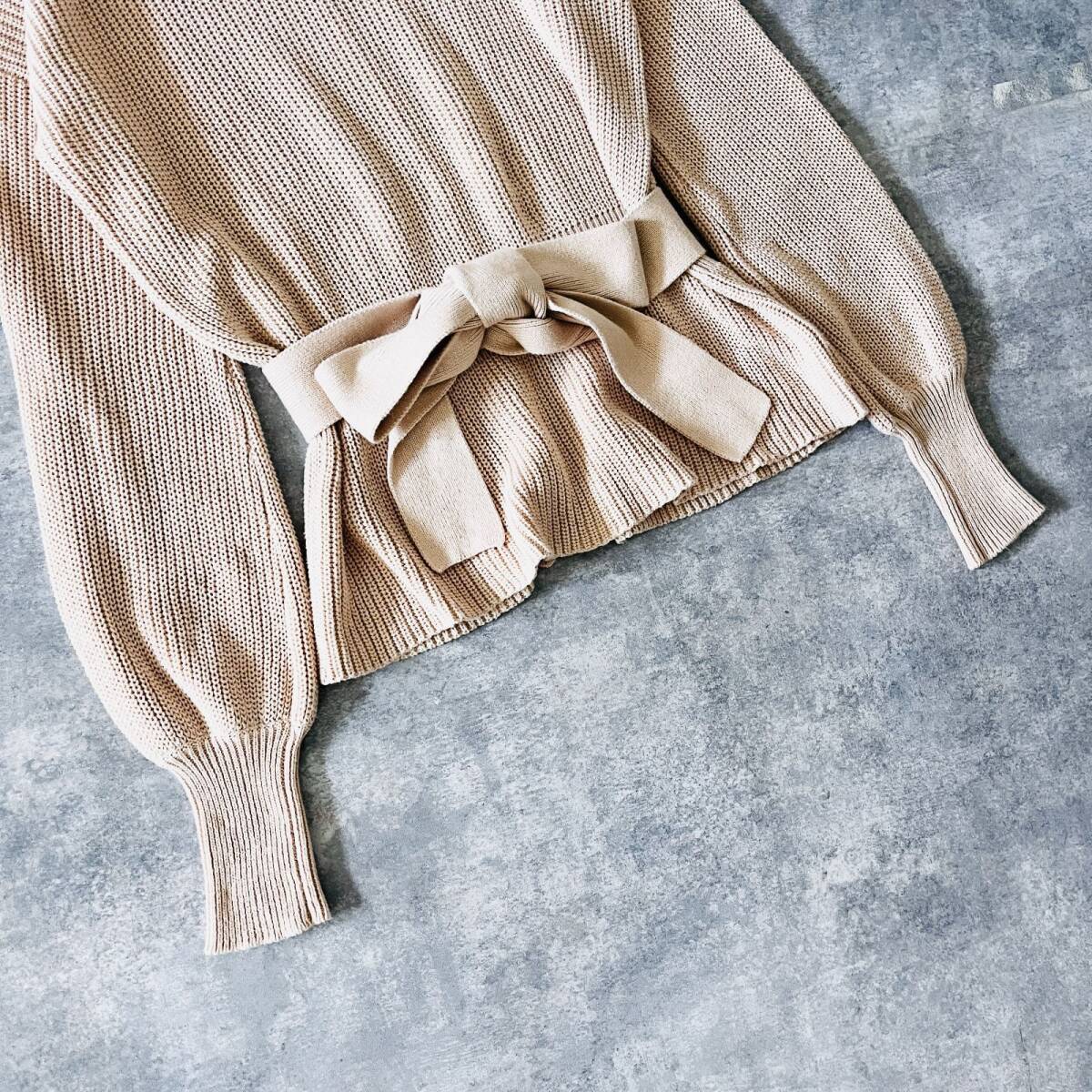 畦ニット プルオーバー ベルト付き ニット 長袖 タートルネック ハイネック セーター フレア ペプラムニット 裾ペプラム