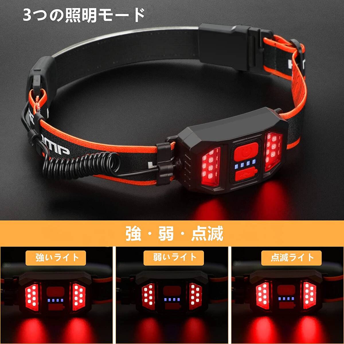 ヘッドライト 充電式 へっとライト ヘッドランプ 3種点灯モード 高輝度 アウトドア用ヘッドライト 防水 防塵 超軽量 1000mAh大容量バッテリー SOS点滅 最大6時間使用可能 サイズ調整可能 夜釣り/停電/防災/登山/作業/キャンプ/散歩/アウトドアに最適 (2個入り)