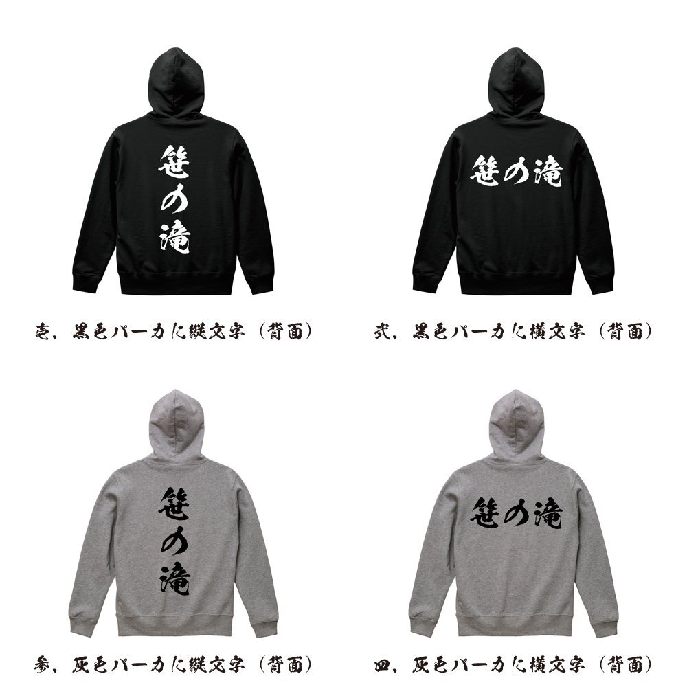 笹の滝 オリジナル パーカ 書道家が書く プリント フルジップ パーカー S M L XL XXL 110 130 150 【 滝百選 】