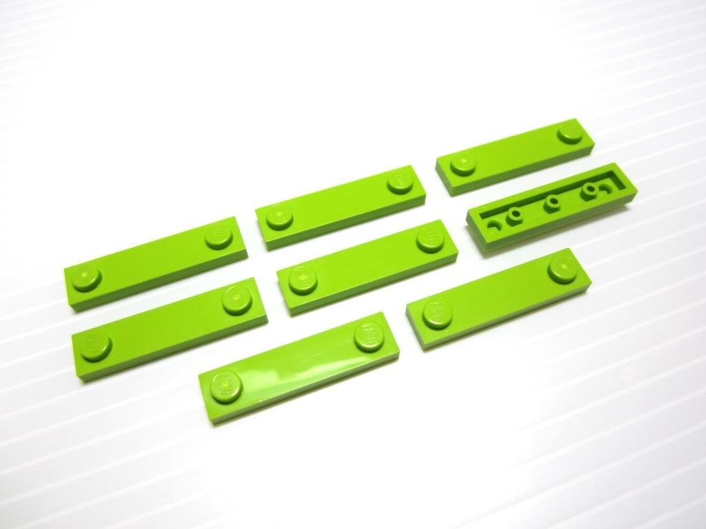 本品は黄緑色の1×4プレート8点セット(両端2ポッチ)です。