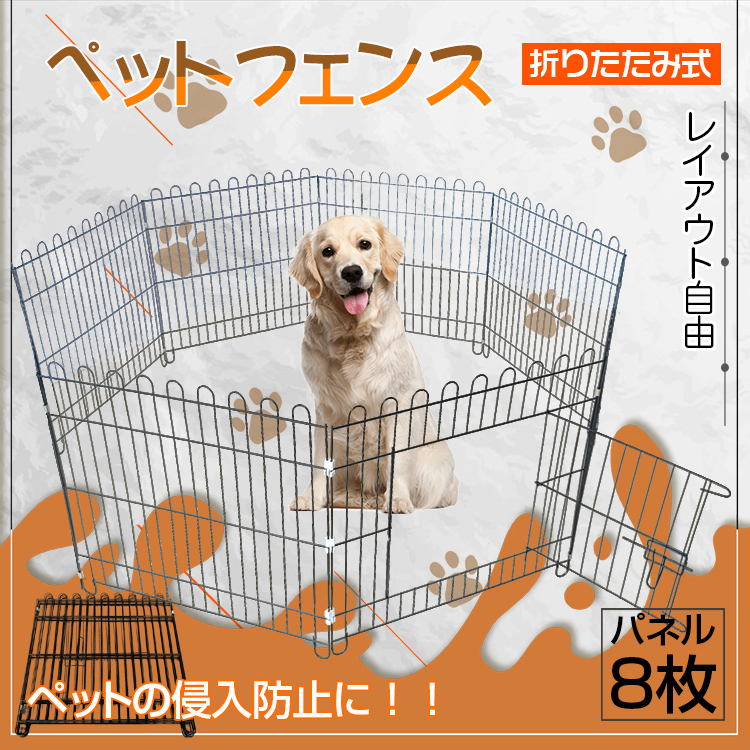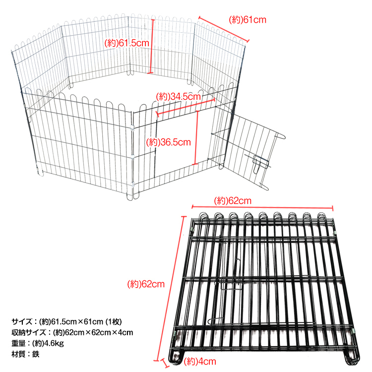 柵 フェンス ペット ケージ 61×61.5cm 8枚 ペットサークル 犬 猫 赤ちゃん ベビーゲート 侵入防止 工具不要 コンパクト レイアウト pt037