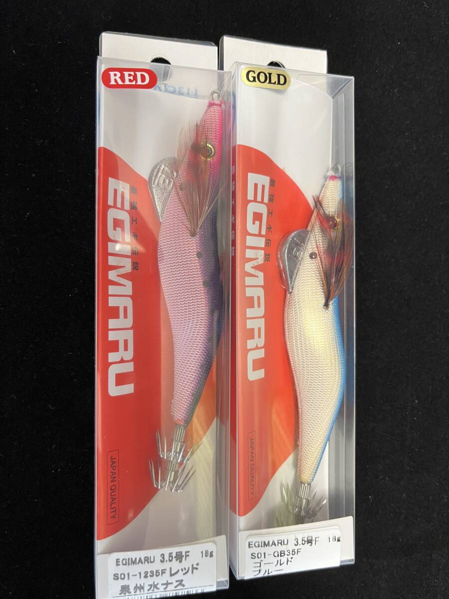 | 【新品未使用品】ブリーデン エギマル(EGIMARU)3.5号F レッド泉州ナス&ゴールドブルーのセット | |