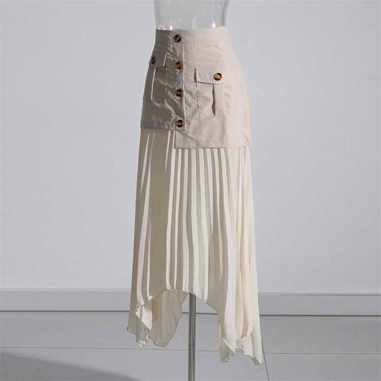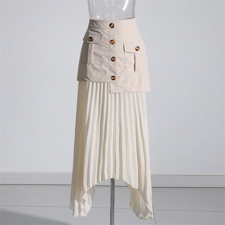ロングスカート フリル プリーツ きれいめ フリンジ シンプル カジュアル お出かけ レディース XL ベージュ