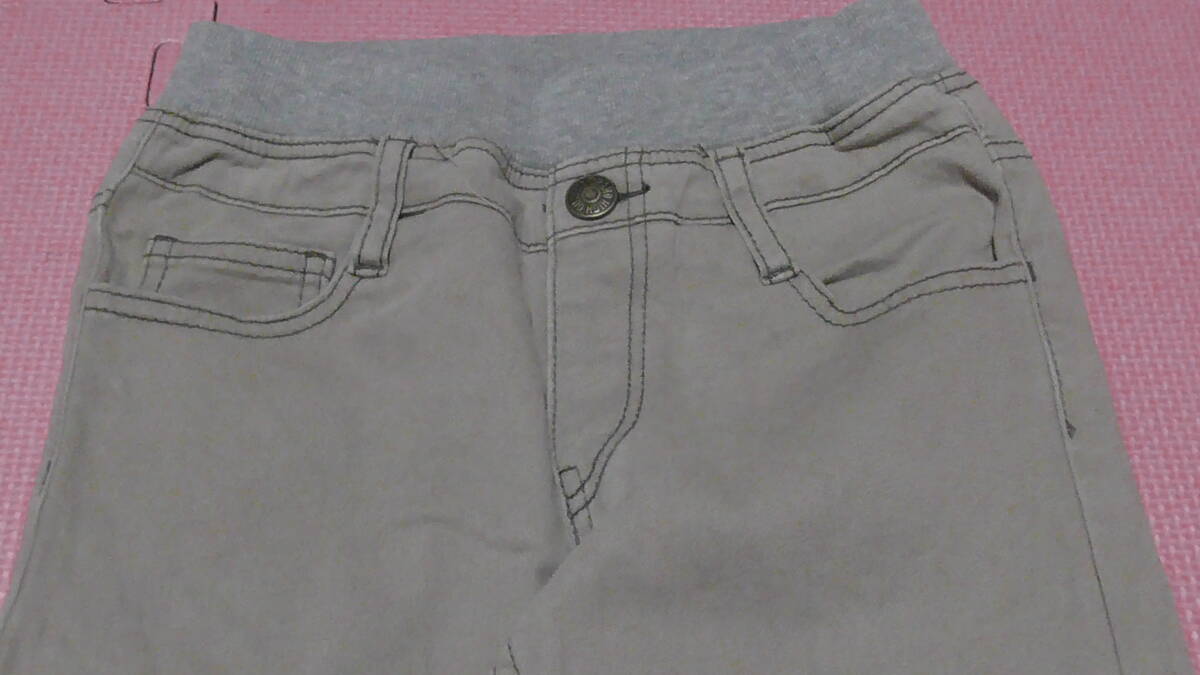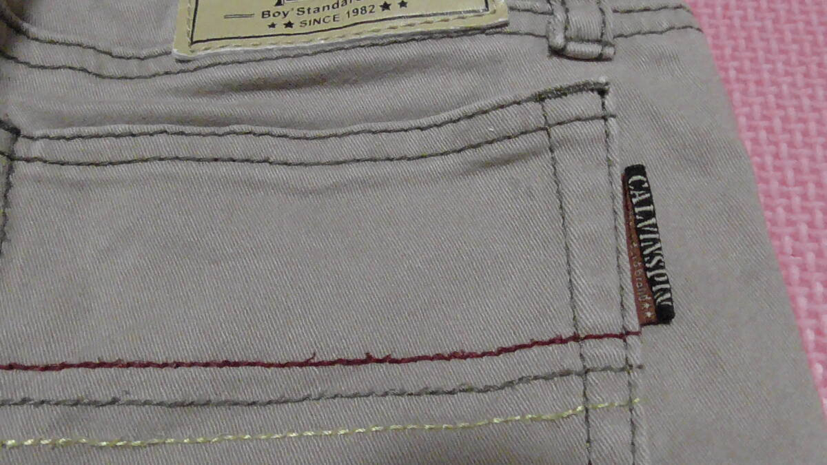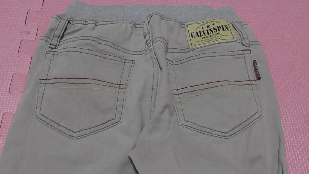 140 CALVINSPIN チノパンツ ベージュ 飾りボタン付き ウエストリブ ロングパンツ 綿98% 長ズボン ゴム調節可 男の子 秋物 USED 送料無料