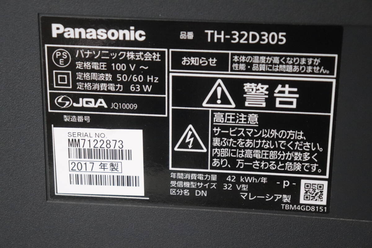 YKA/T24 Panasonic パナソニック VIERA TH-32D305 32型 液晶 テレビ 2017年製 地上デジタル放送視聴可能 直接引き取り歓迎 | |||