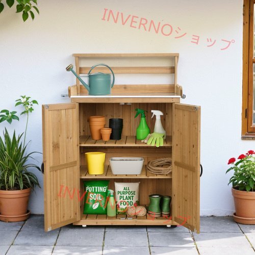 物置き 木製 収納庫 観音扉 ガーデニング用品 小屋 戸外収納庫 大型 屋外物置 棚 大型 ドア ベランダ 物置き 屋外収納 ガーデニング ウッド