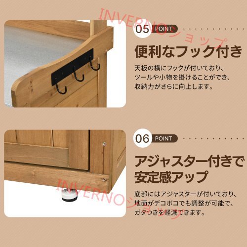 • ◎06【便利なフック付き】天板の横にフックが付いており、ツールや小物を掛けることができ、収納力がさらに向上します。使い勝手も抜群です。フック耐荷重 3kg