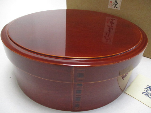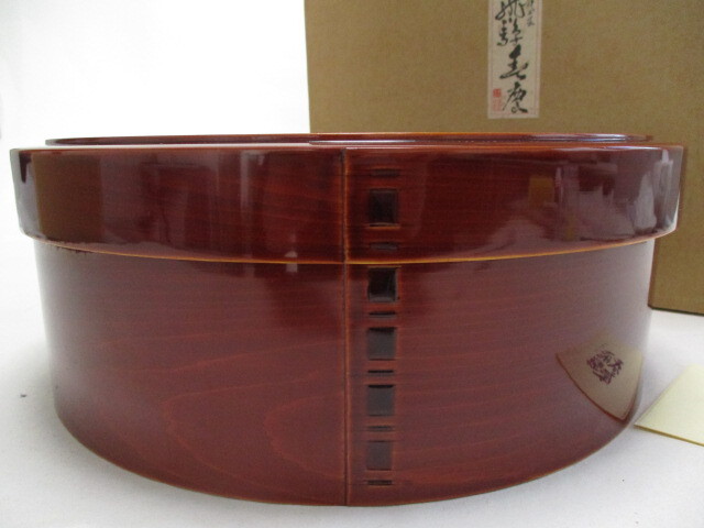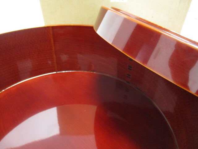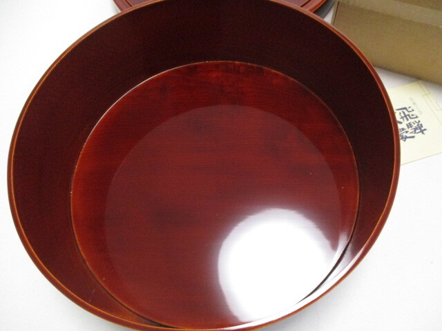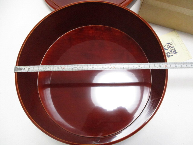 サイズは30.5x高さ10.5cm(蓋込み サイズは32x高さ11.5cm)  天然木 漆塗装  大き目サイズ