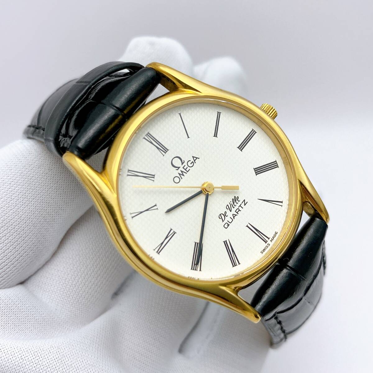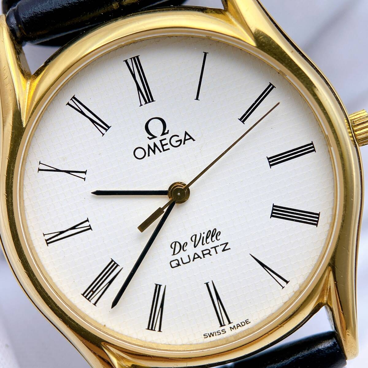 【稼働】美品 オメガ OMEGA デビル DEVILLE メンズ 腕時計 クオーツ QZ ゴールド ラウンド 白字 ローマ数字 3針 1336 ヴィンテージ 動作 y2