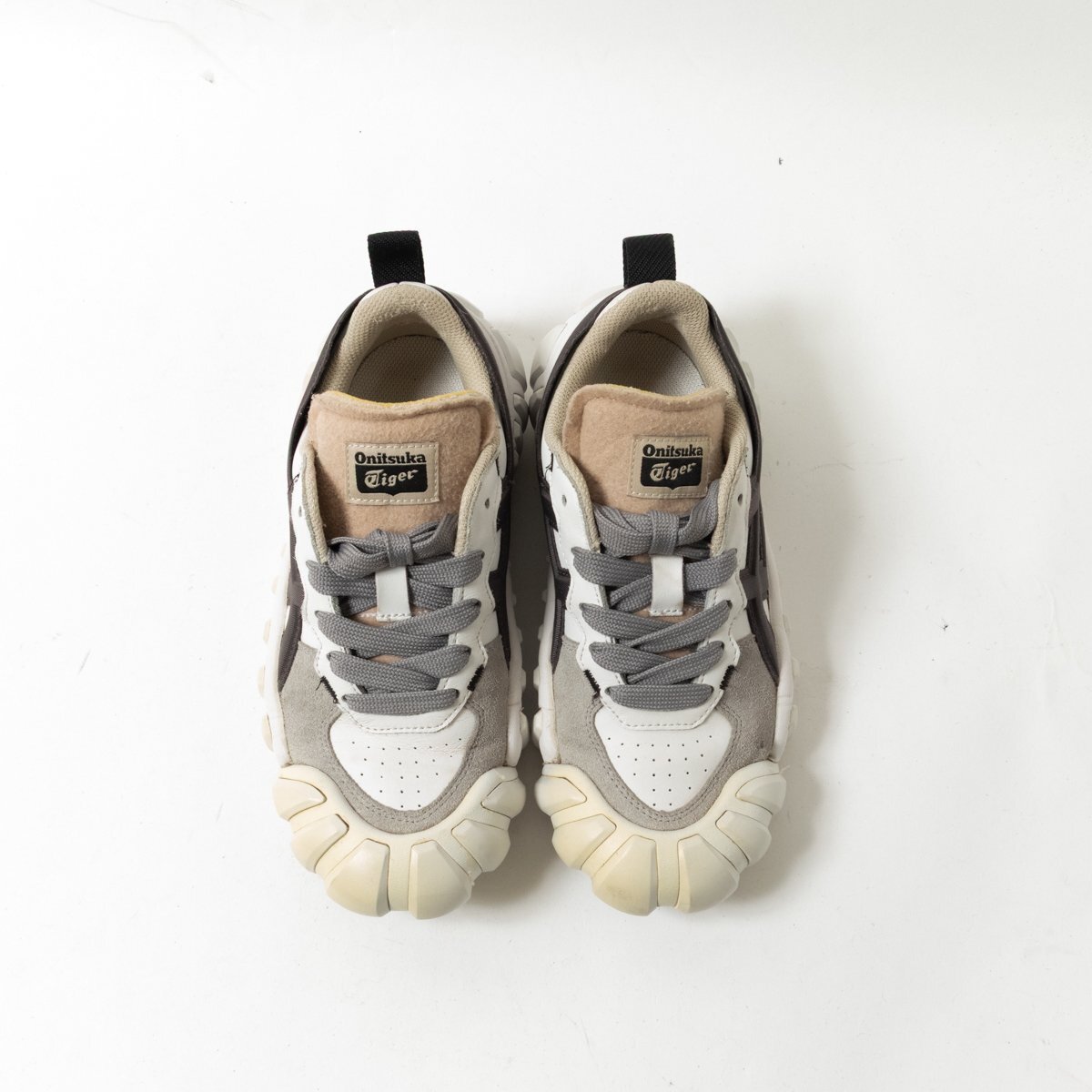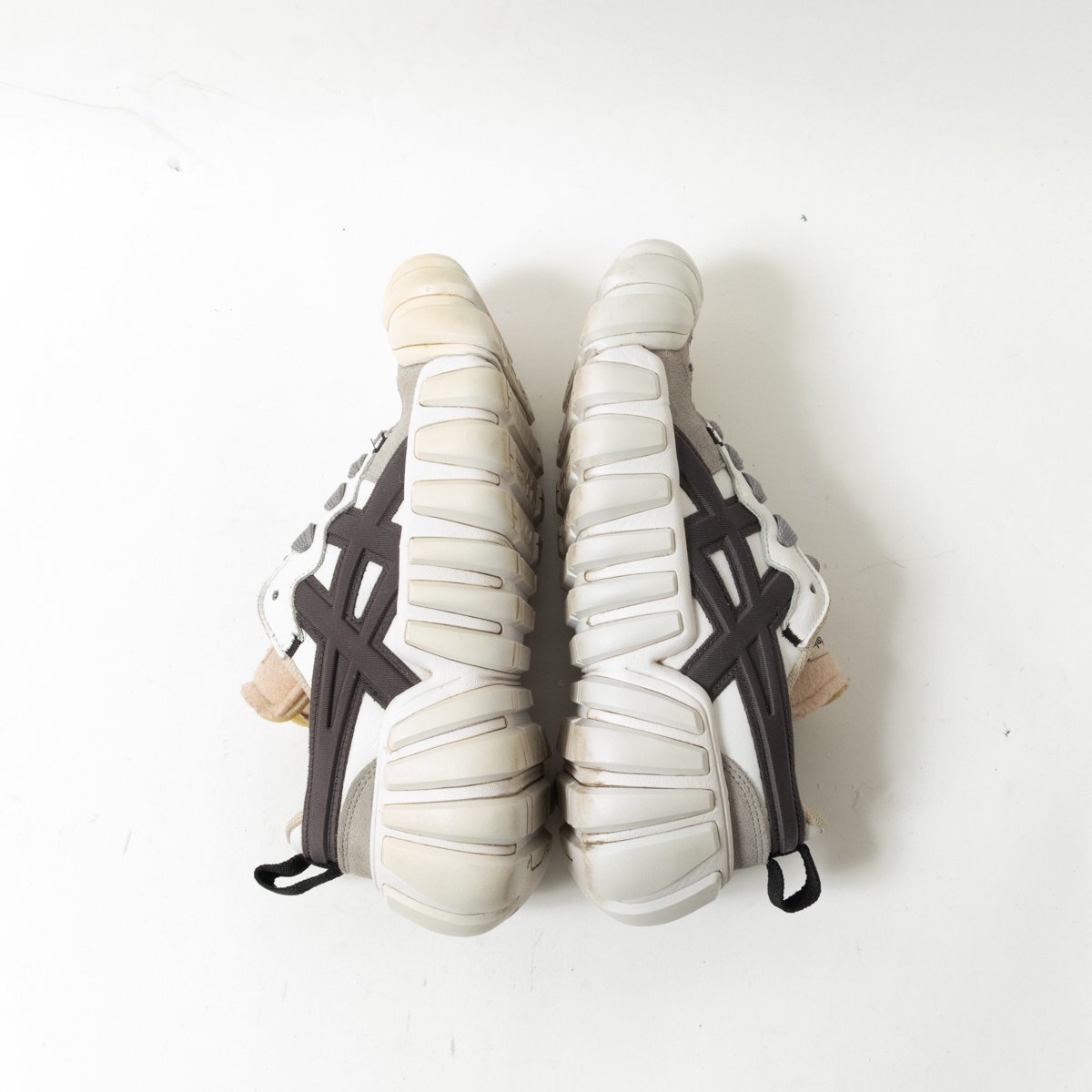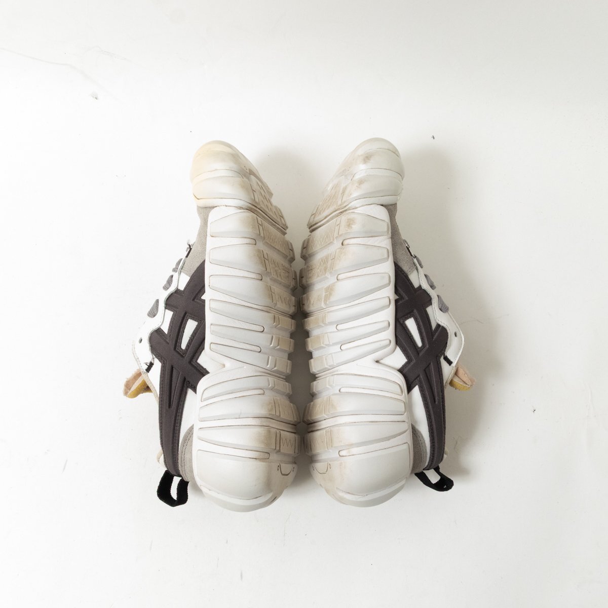 | 状態 | C 履きジワ、つま先ソールの黄ばみ、ベロ部分やスエード部分の毛羽立ち、全体的にスレや薄汚れ、右足腰裏の破れ、着用感がございます。 |