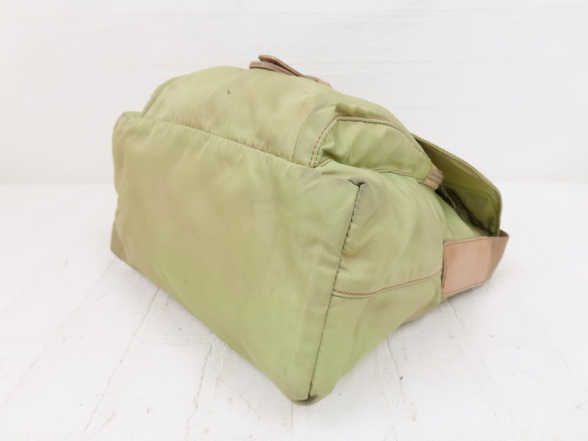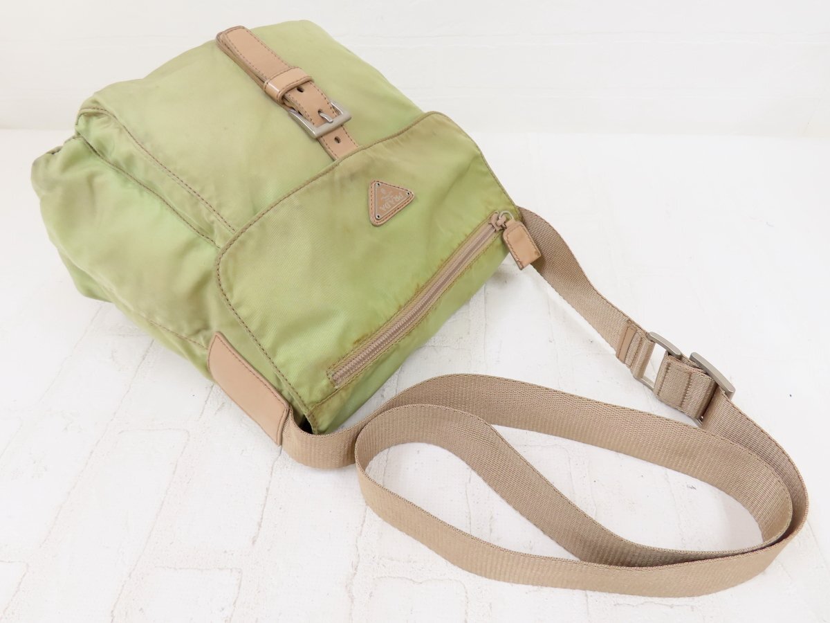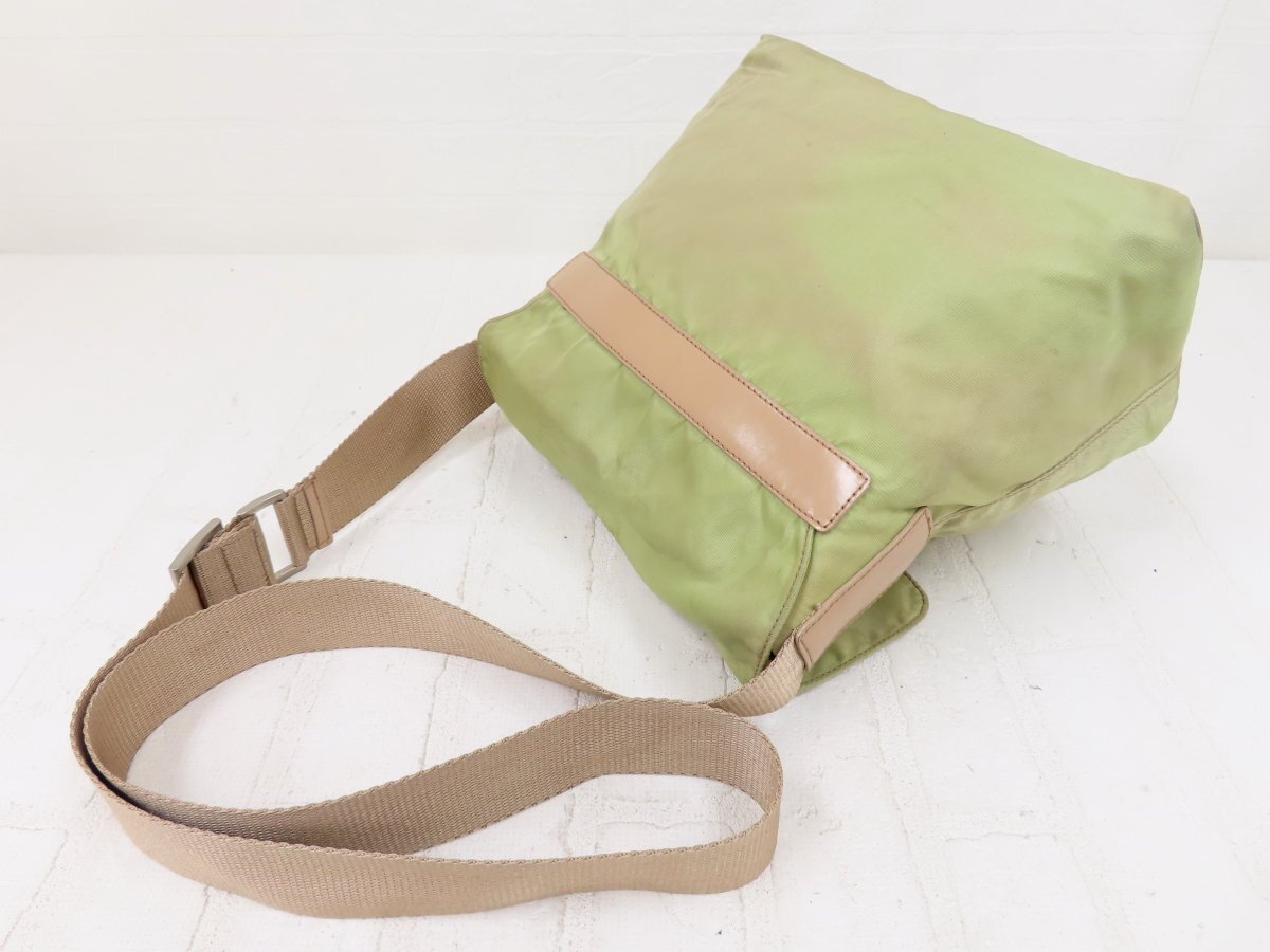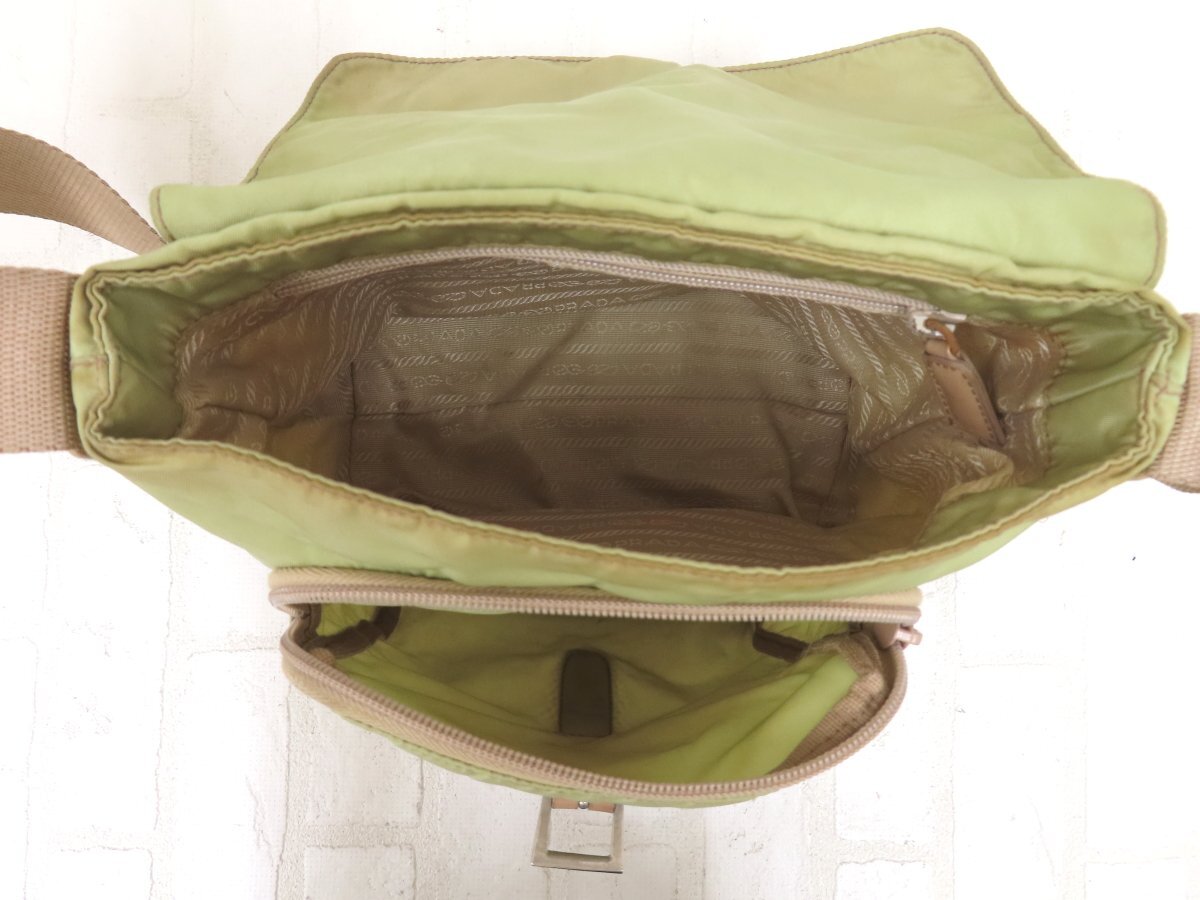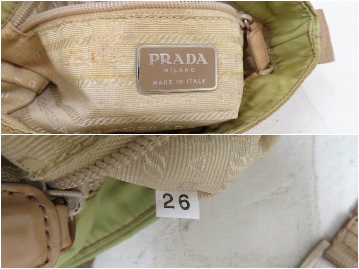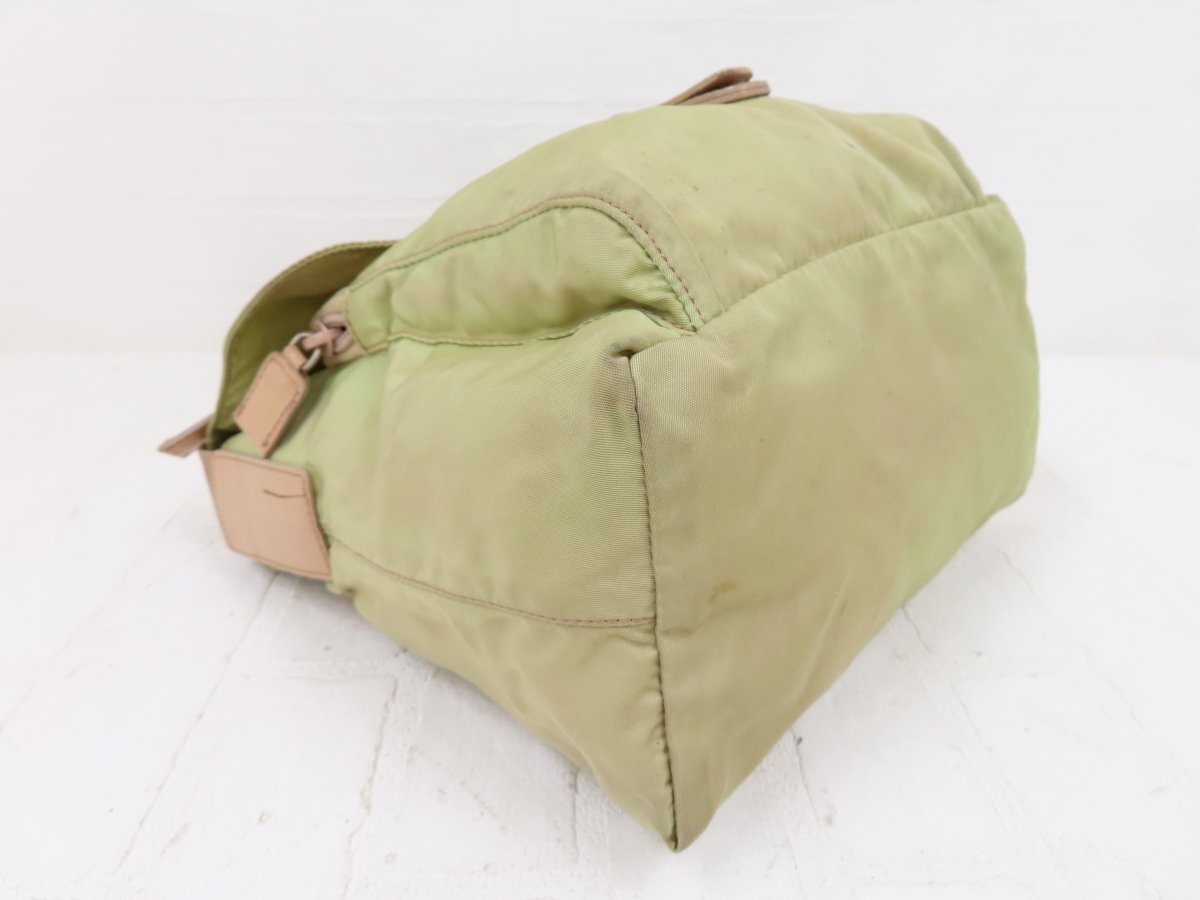 ◆PRADA プラダ◆ナイロン カーフ レザー 本革◆ショルダー バッグ◆薄カーキ ベージュ シルバー金具◆イタリア製◆フラップ◆A13564