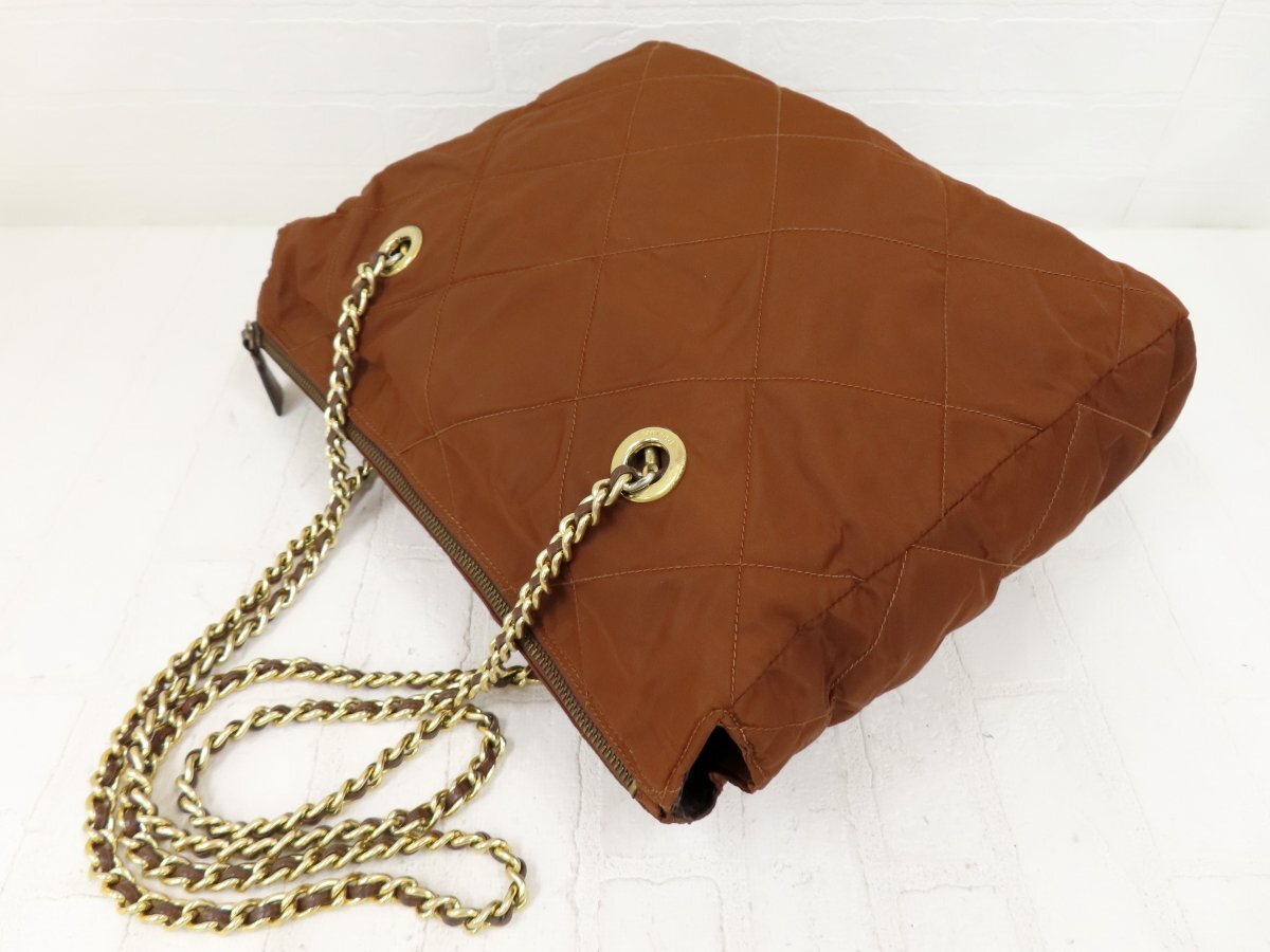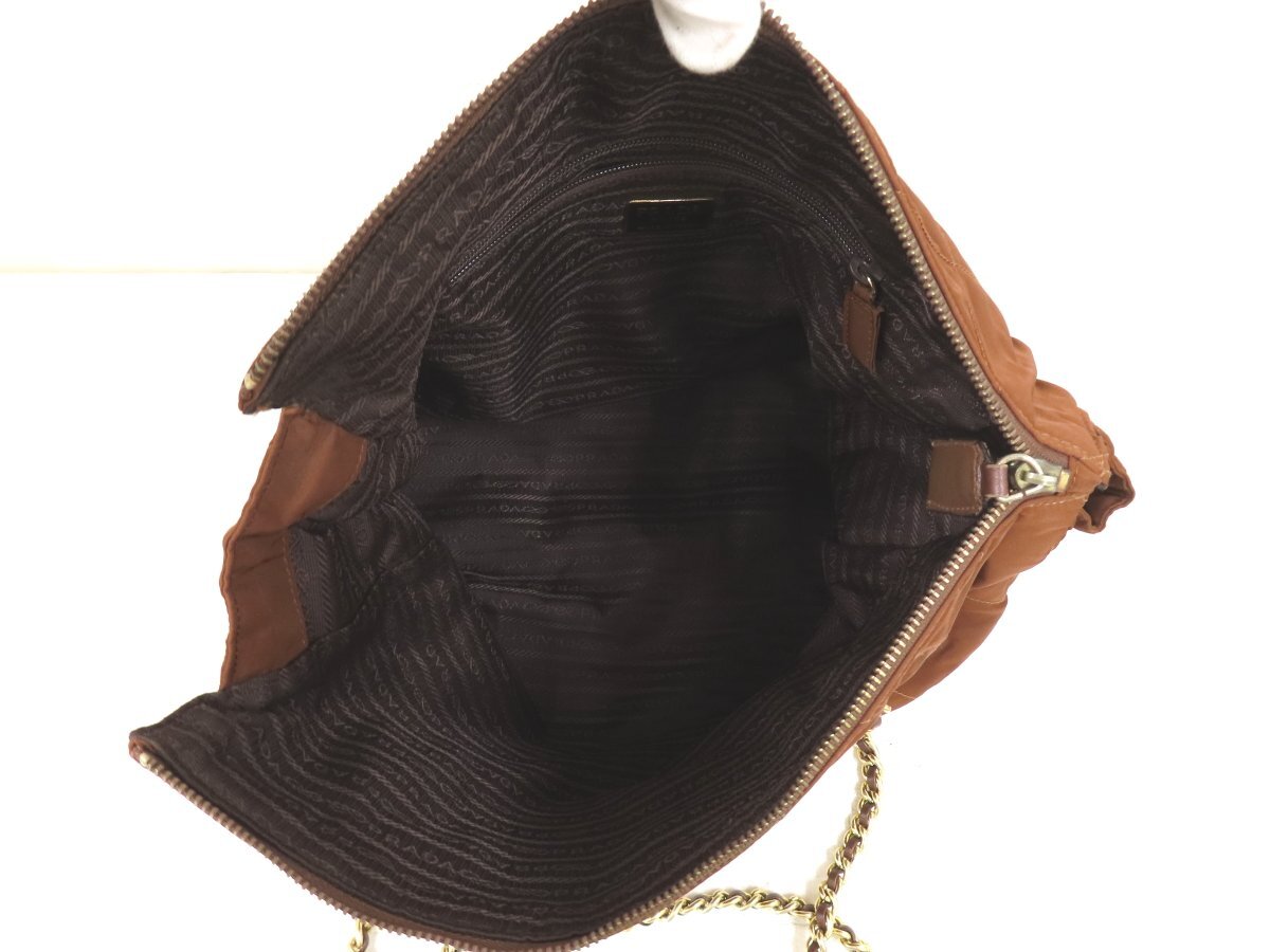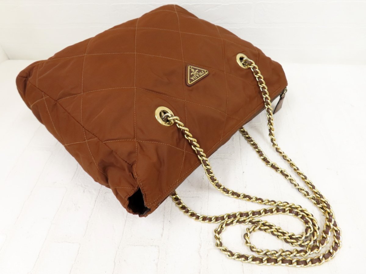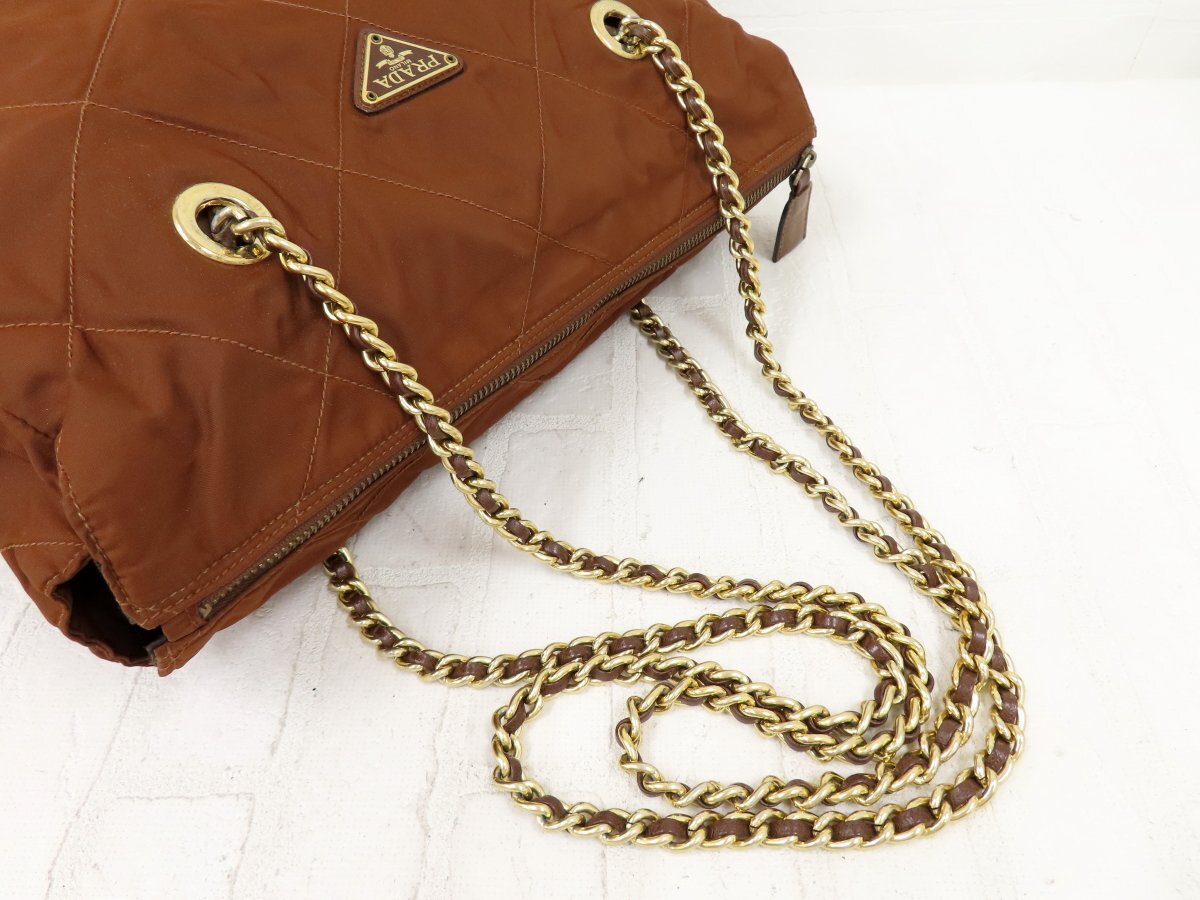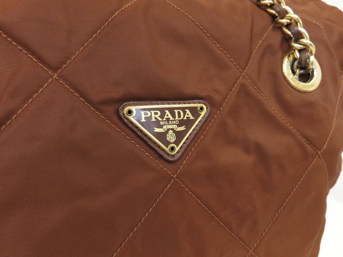 ◆美品◆PRADA プラダ◆キルティングナイロン サフィアーノ レザー 本革◆チェーン ショルダー バッグ◆茶 G金具◆ヴィンテージ◆A13569