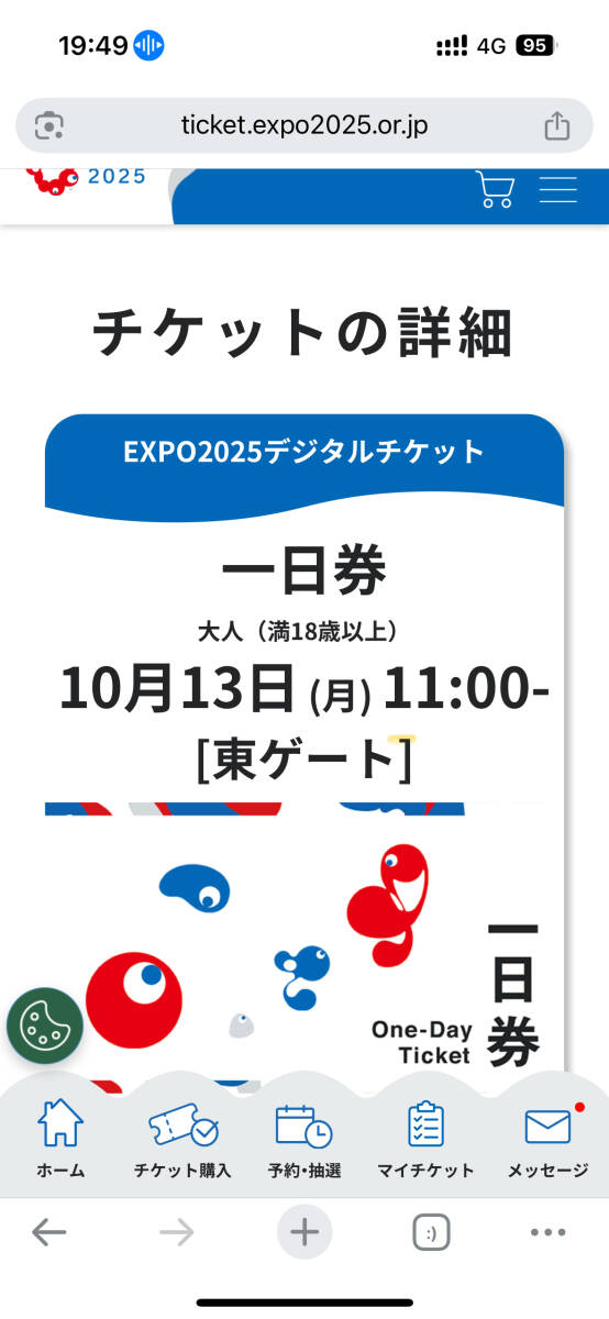 大阪万博 EXPO2025 デジタルチケット10/13 ( 月 祝日 ) 11:00 東ゲート