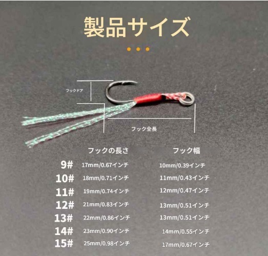 メタルジグ用のシングルアシストシングルフック20本セットです。