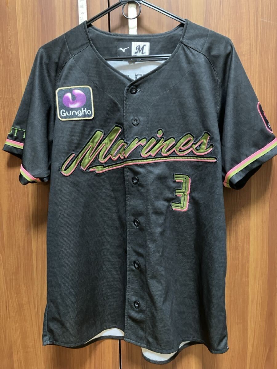【美品】千葉ロッテマリーンズ 角中選手 2024BLACK SUMMER レプリカユニフォーム サイズM