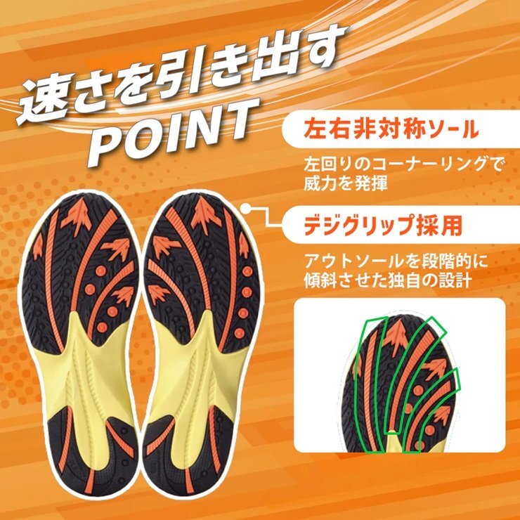 瞬足の新レーシングモデル「S-AXELRATER(エスアクセルレータ)」から、陸の最速動物「チーター」をデザインモチーフにしたデザインが登場。 軽量性と耐久性を兼ね備えたメッシュ材に「チーター柄」を取り入れ、インパクトあるデザインに仕上げています。 また、左右非対称ソールにはアウトソールを段階的に傾斜させた独自の設計「DIGIGRIP(デジグリップ)」を採用しており、コーナー走行時にしっかりと地面を捉え子供たちの走りをサポートします。 <特徴> アッパーの「チーター柄」はインパクト大。履くだけで気持ちも最速のチーターに! 体が傾いてしまうコーナー走行時でも地面を確実に捉える「DIGIGRIP(デジグリップ)」を採用 令和の子供の足に合わせてフィッティング性を向上させた新設計ラスト「NEO-RACING FIT LAST(ネオ-レーシングフィットラスト)」を採用。 ・左右非対称ソール ・軽量(当社比) ・カップインソール ・デジグリップ ・ネオ-レーシングフィットラスト ・名前記入スペース | |
