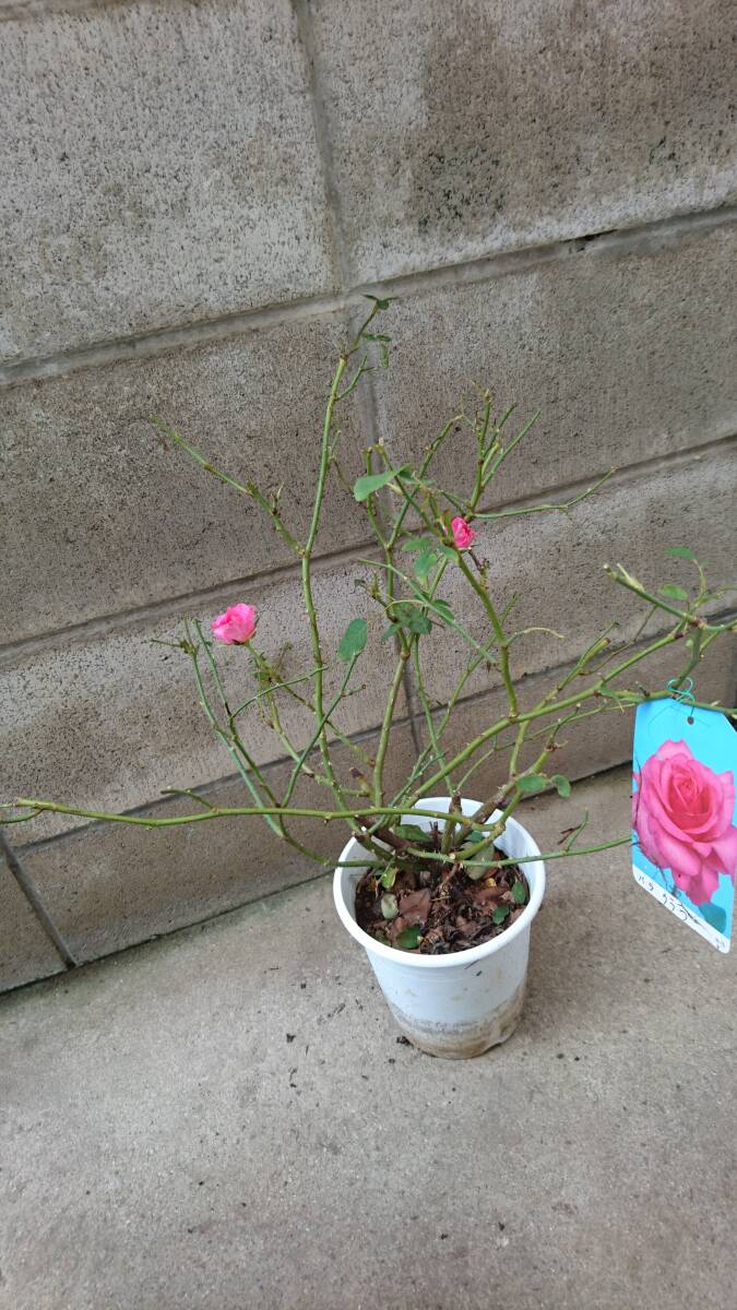 ショッキングピンクの花色がたいへん華やかなバラです。