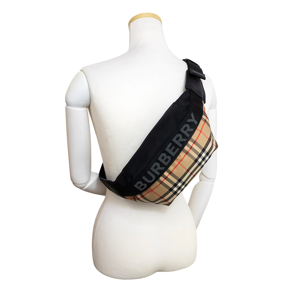 (未使用 展示品)バーバリー BURBERRY ソニー ヴィンテージチェック ベルト ウエスト ボディバッグ ナイロン レザー ベージュ 8026557