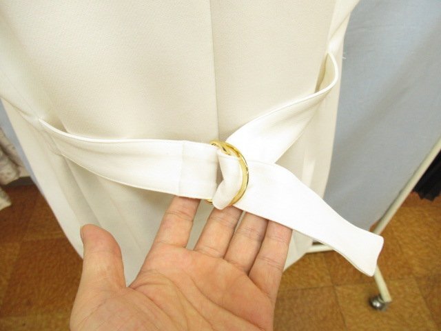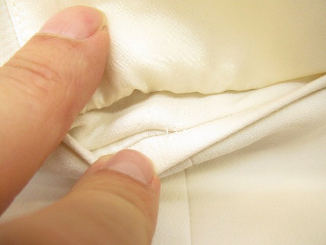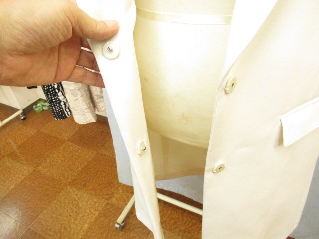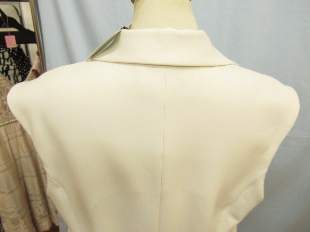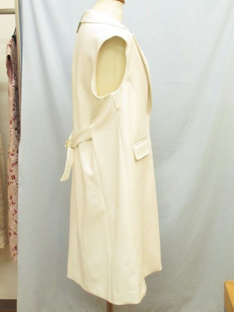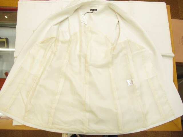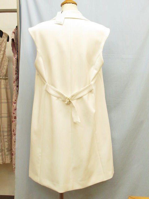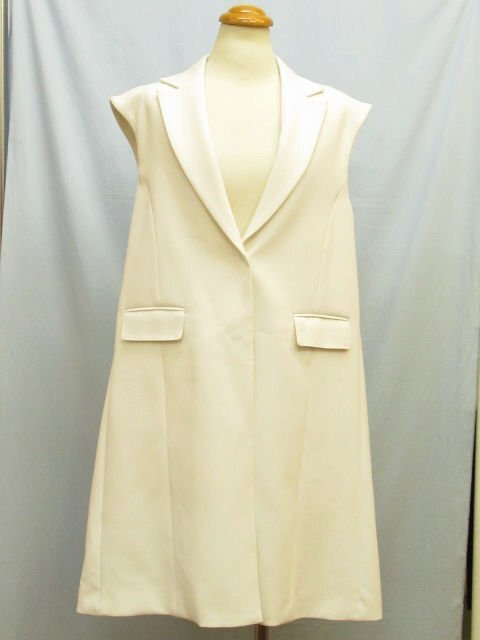 【色】 白 【サイズ】 表記:42 メジャー採寸: 約 肩幅46 胸囲50 丈90 【素材】 ポリエステル73 レーヨン20 ポリウレタン7 裏地:キュプラ100 【付属品】 画像の紙タグ 【参考定価】 53900円 【商品説明】 デュアルヴューの画像のように前が大きなホック式のロング丈のジレです。 -------------------------------------- 【状態ランク】 外観:新品未使用~同様 中側:新品未使用~同様 【状態説明】 ・画像のように紙タグが付いています。安全ピンで付いているので念のため新品同様としております。 ・画像8のようにポケット上側が仮縫いされたままです。 ・特に目立つような汚れやシミなどもなく着用感を感じない商品です。 |