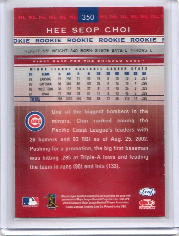 ★☆チェ・ヒソプ カード Vol.51 2002LEAF ルーキー カブス☆★ | |
