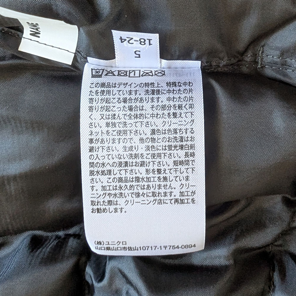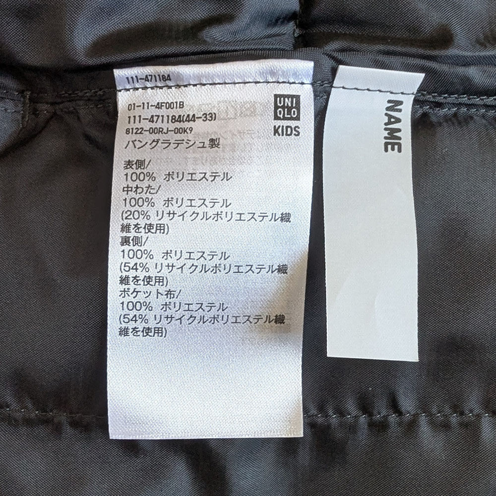 ユニクロ パフテックウォッシャブルパーカ 黒 160サイズ